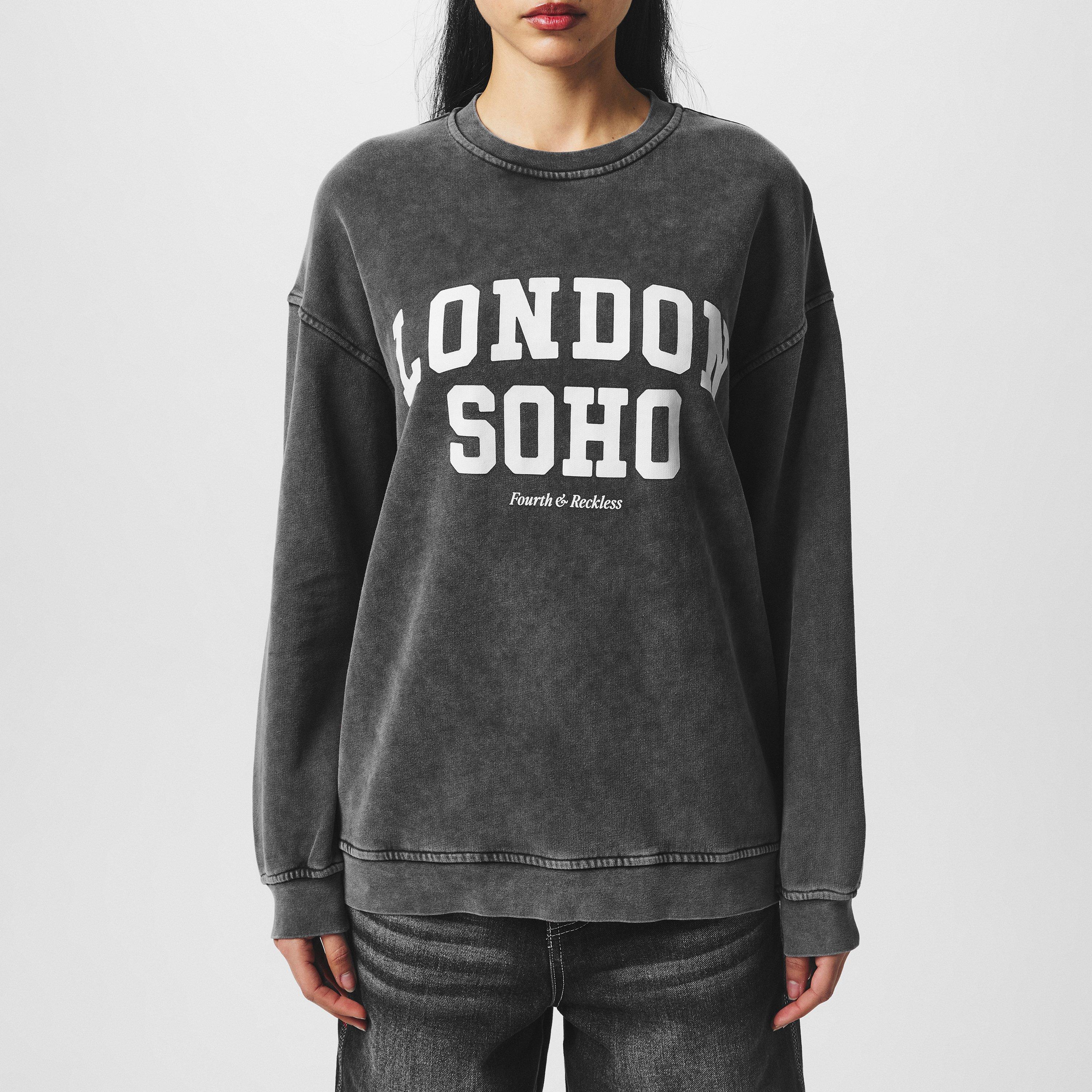 The printed London Soho logo on the chest is rendered in varsity lettering for an on-trend touch.