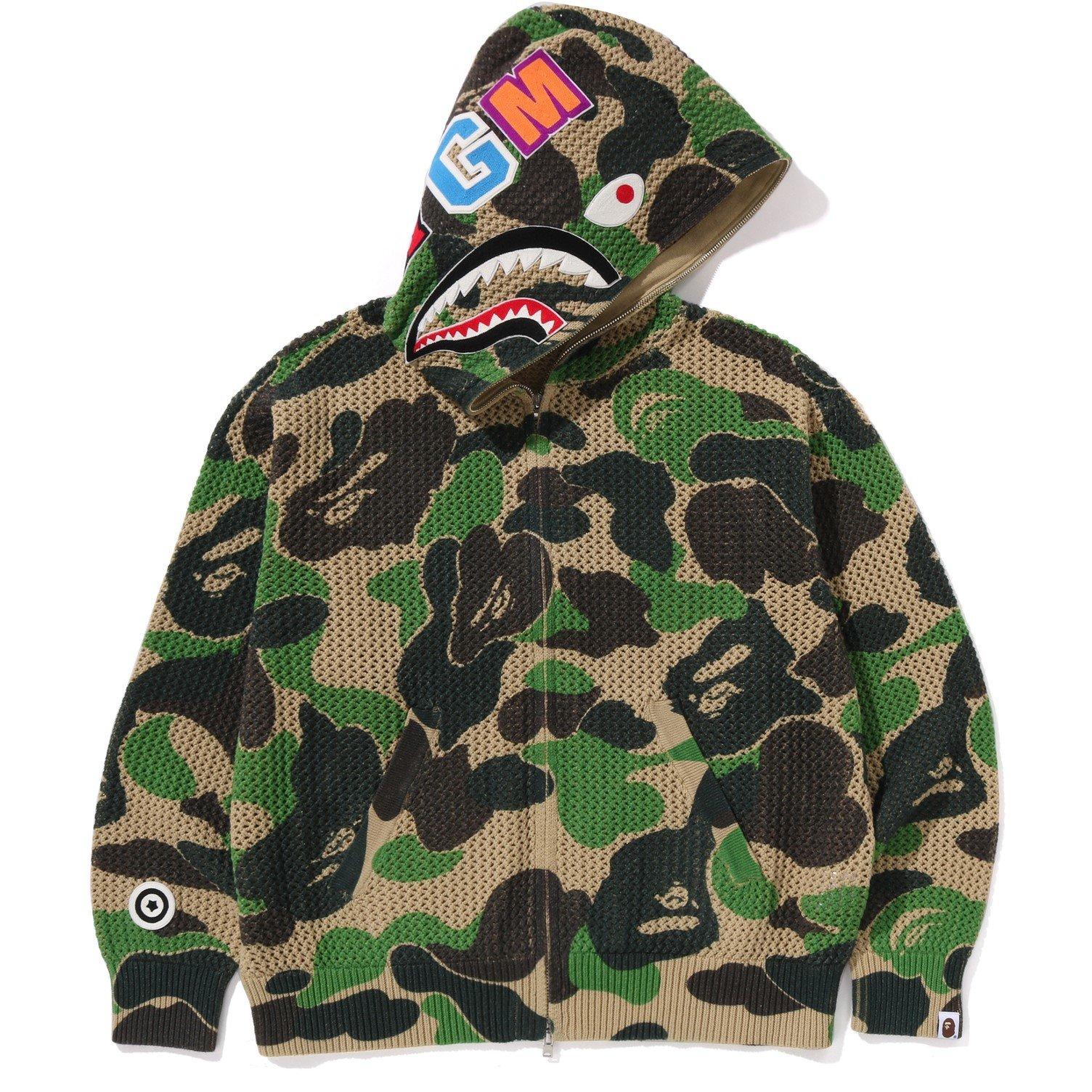 A Bathing Ape's Crochet Shark Zip Hoodie merges the brand's well-known shark motif with a textured crochet fabrication, finished with a functional hood zipper. The shape balances designer streetwear heritage with tactile design elements for contemporary fashion appeal.