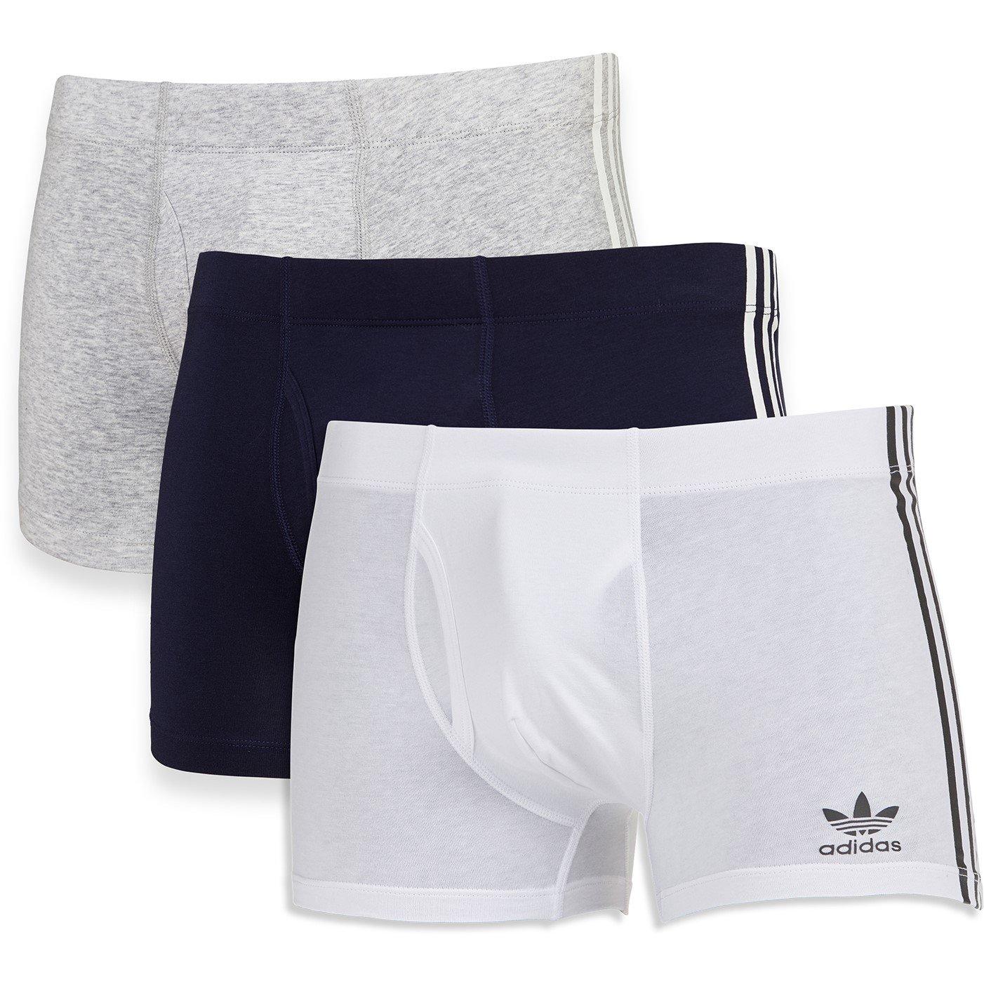 Comfort starts with flexibility. This stylish trunk silhouette created with sustainable soft cotton stretch keeps you dry while staying new longer. The chafe free design, emblazoned with contrasted logo and signature 3 stripe screen print sides move with you throughout the day and won't hold you back. Boxer shorts with trefoil logo at front and 3-stripe down the side. 95% Cotton, 5% Elastane