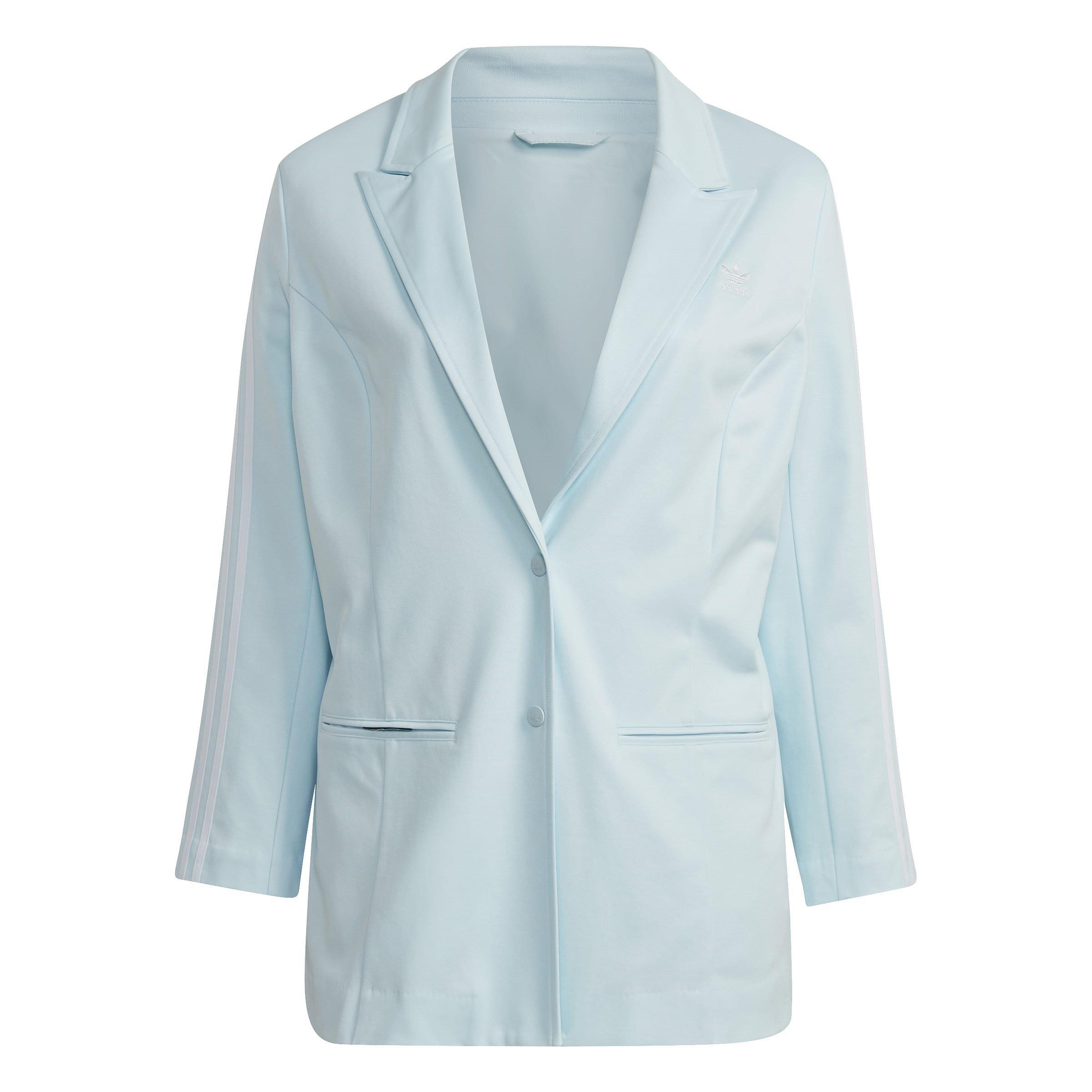 The Adidas Long Sleeve Blazer from adidas Originals pairs sporty heritage with smart style. Featuring a notched lapel collar and single-breasted button fastening, this regular fit jacket offers a sharp cut while the three stripes along the sleeves deliver an athletic appeal.
