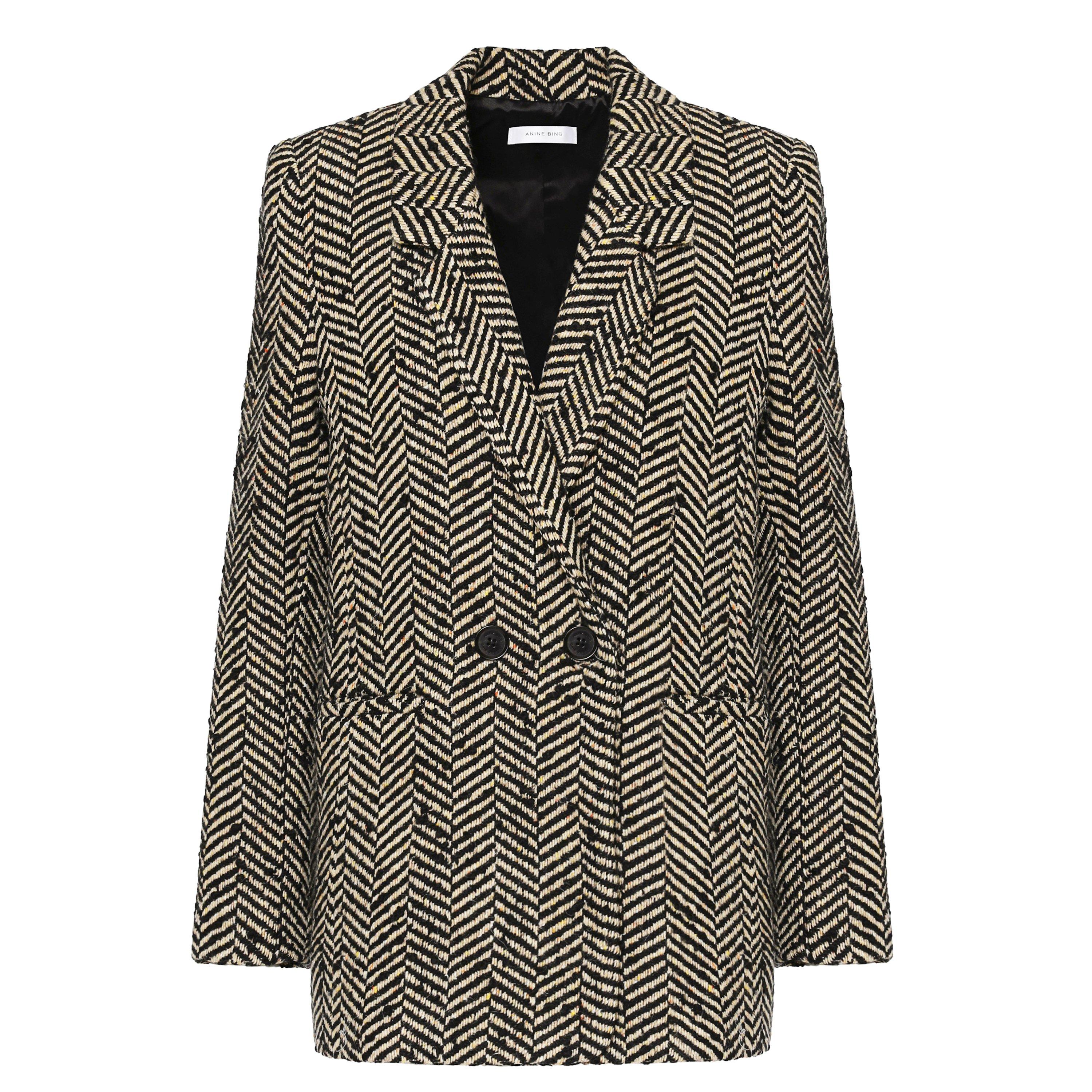 Anine Bing's Fishbone Herringbone Long Sleeve Blazer delivers a classic style with its menswear-inspired tailoring. Made from a textile mix featuring a classic herringbone pattern, this monochromatic piece has a clean single-button closure with notched lapels and functional pockets for styling.
