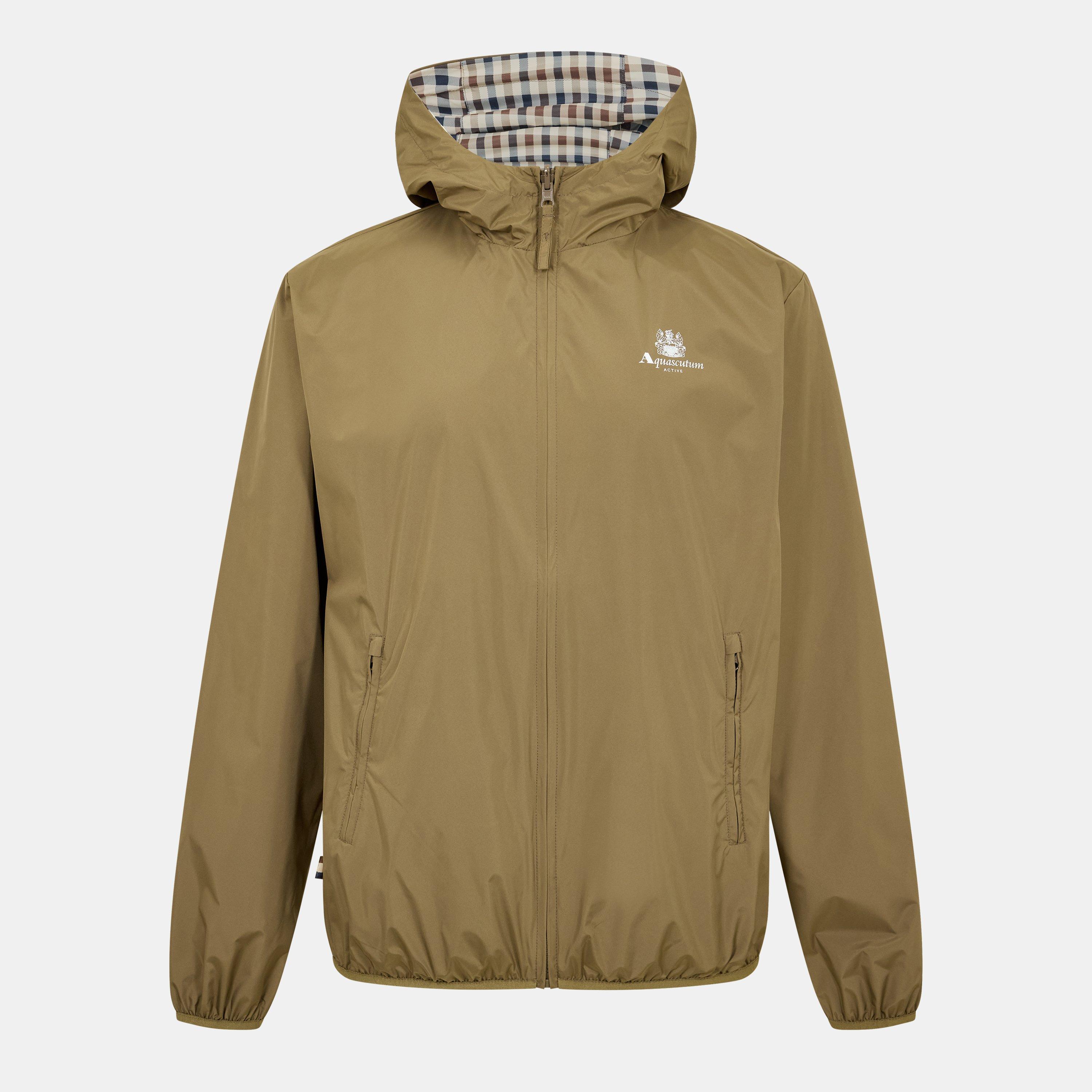 Aquascutum Men's Reversible Check Hooded Long Sleeve Rain Anorak