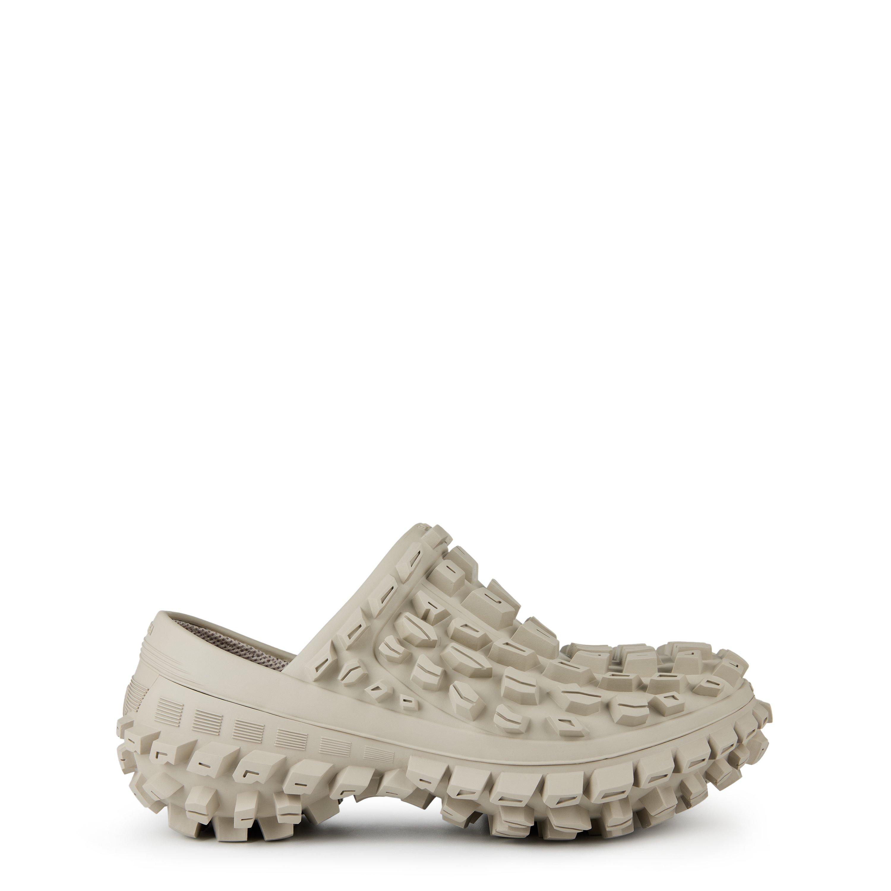 With a slip-on design, this reimagining of the iconic Defender sneaker merges luxury and streetwear. Crafted from high-quality rubber, the 20mm arch and extreme tyre tread on the outer deliver both comfort and bold, fashion-forward aesthetics. The platform track sole presents a fusion of edginess and stability, while the solid colourway epitomises Balenciaga's outlandish yet minimalist distinct style.