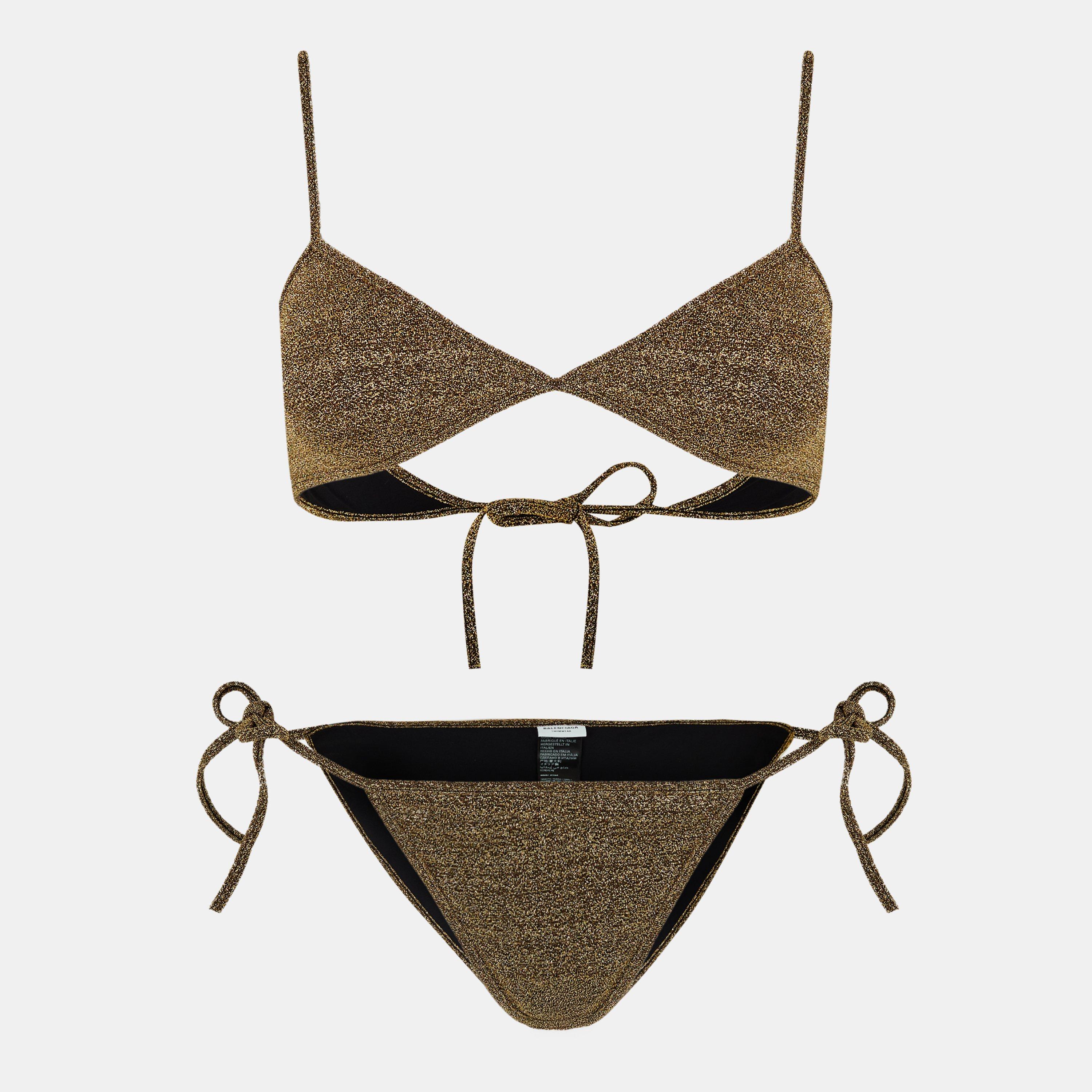 Balenciaga women's bikini set features clean lines and a streamlined design. The minimalist shape offers a contemporary look while providing the comfort expected from quality swimwear.