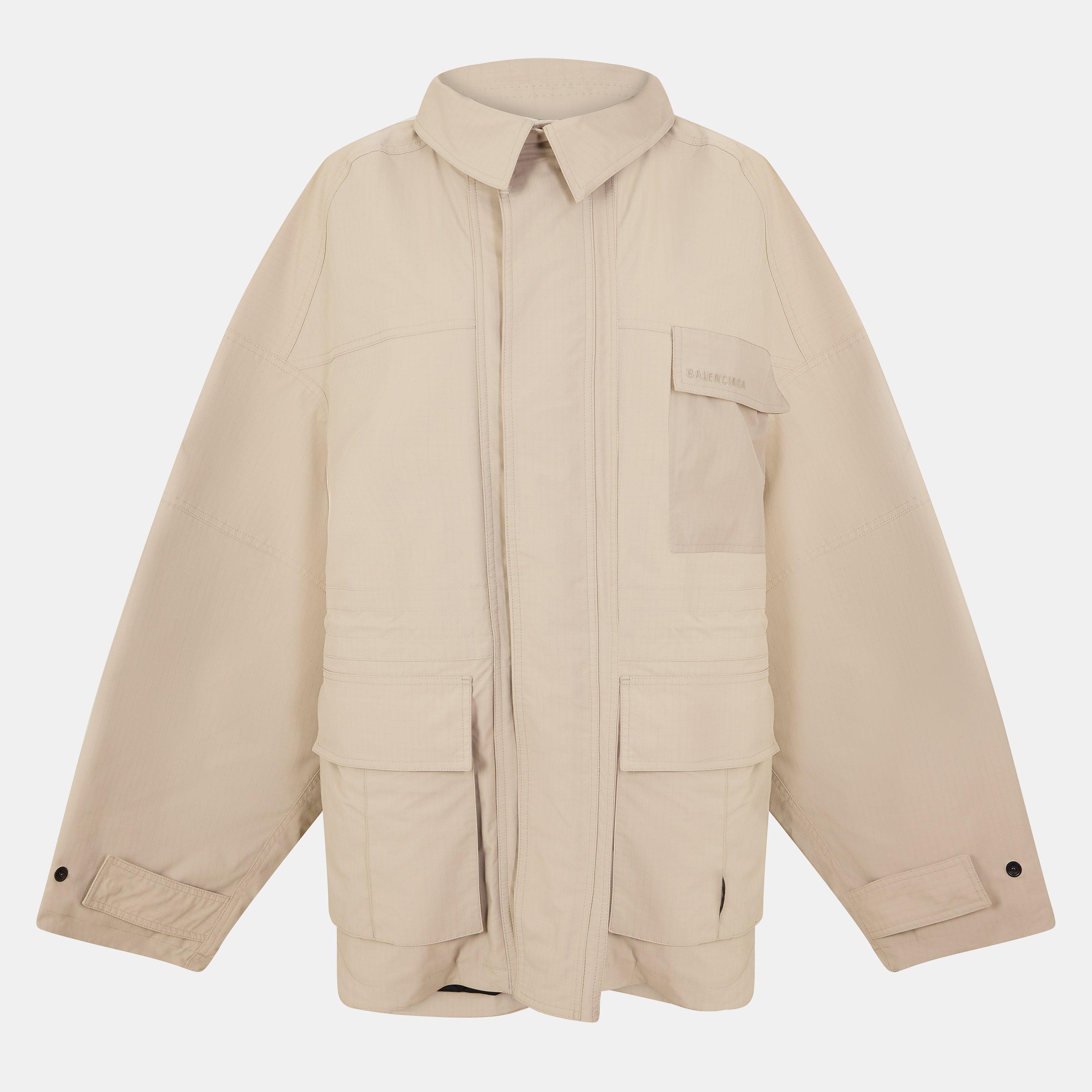 Balenciaga's Oversized Fit Parka is built with a roomy, relaxed shape and functional elements throughout. This outerwear piece pairs practicality with modern simplicity.