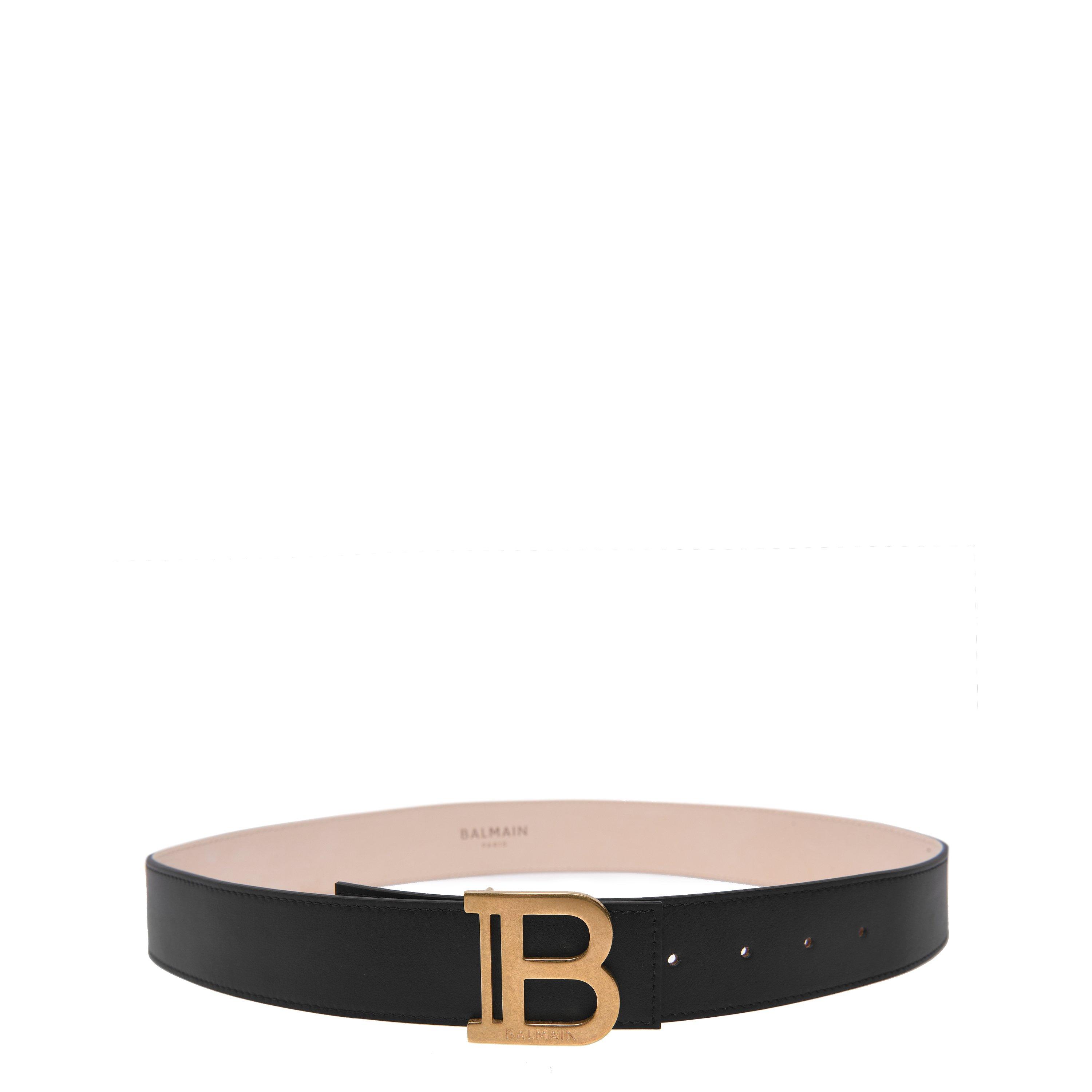 Update your attire with this B Reversible Belt from Balmain. Crafted in a soft leather construction, this belt is designed with reversible sides for a versatility of wear style and features a metal press-and-pop buckle fastening. The look is complete with signature Balmain B metal-ware branding to the buckle for a prominent designer statement.