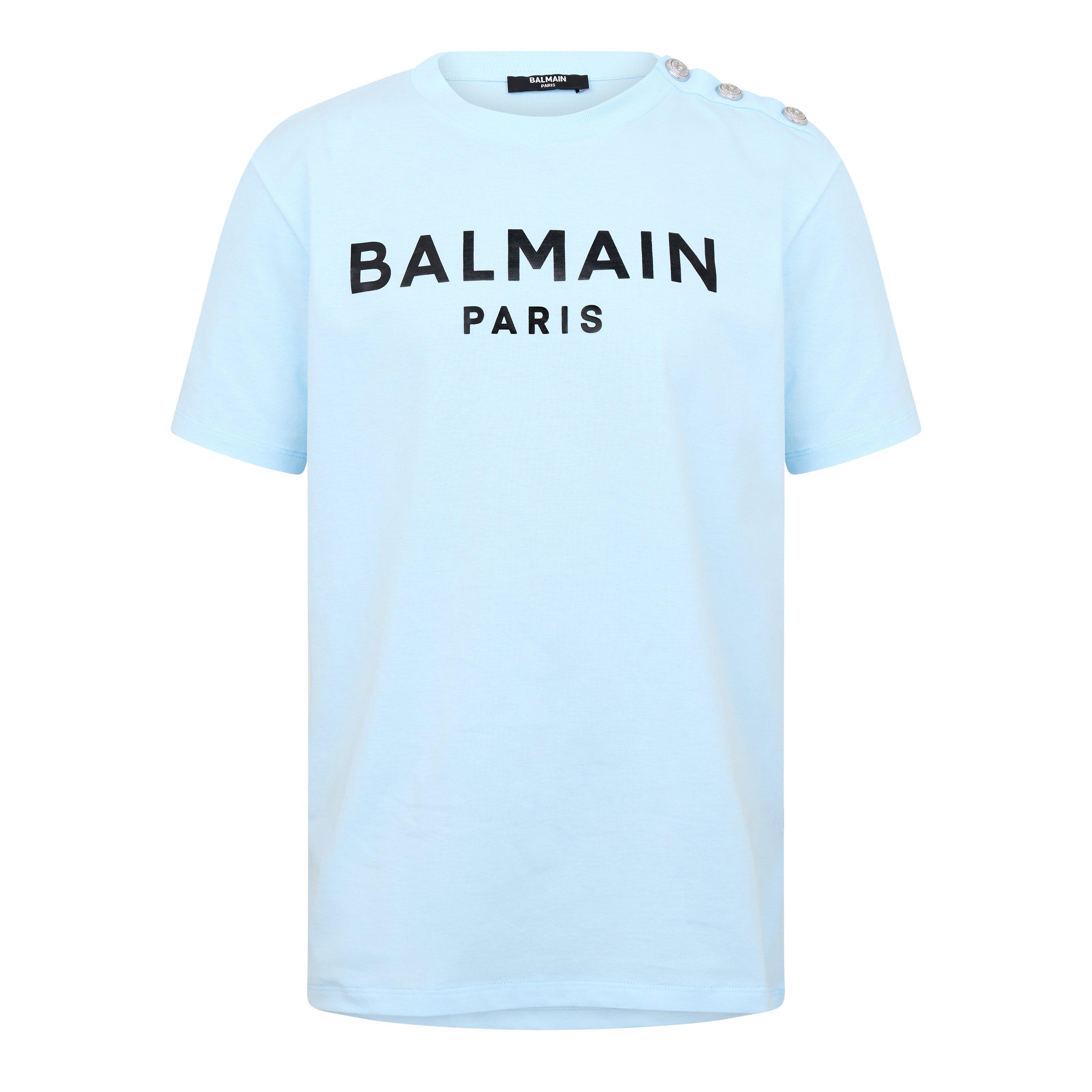Solid base colouring allows the label's famed Paris logo printed on the chest to stand out. It also creates a versatile canvas to style this child's tee into any after-school or weekend ensemble. Embellished with button detailing on the left shoulder for that military touch, Balmain's Button Paris T-Shirt combines comfort, style, and sophistication, making it an ideal choice for every occasion. Whether a casual outing or a special event, this versatile piece ensures your youngster makes a fashionable statement.