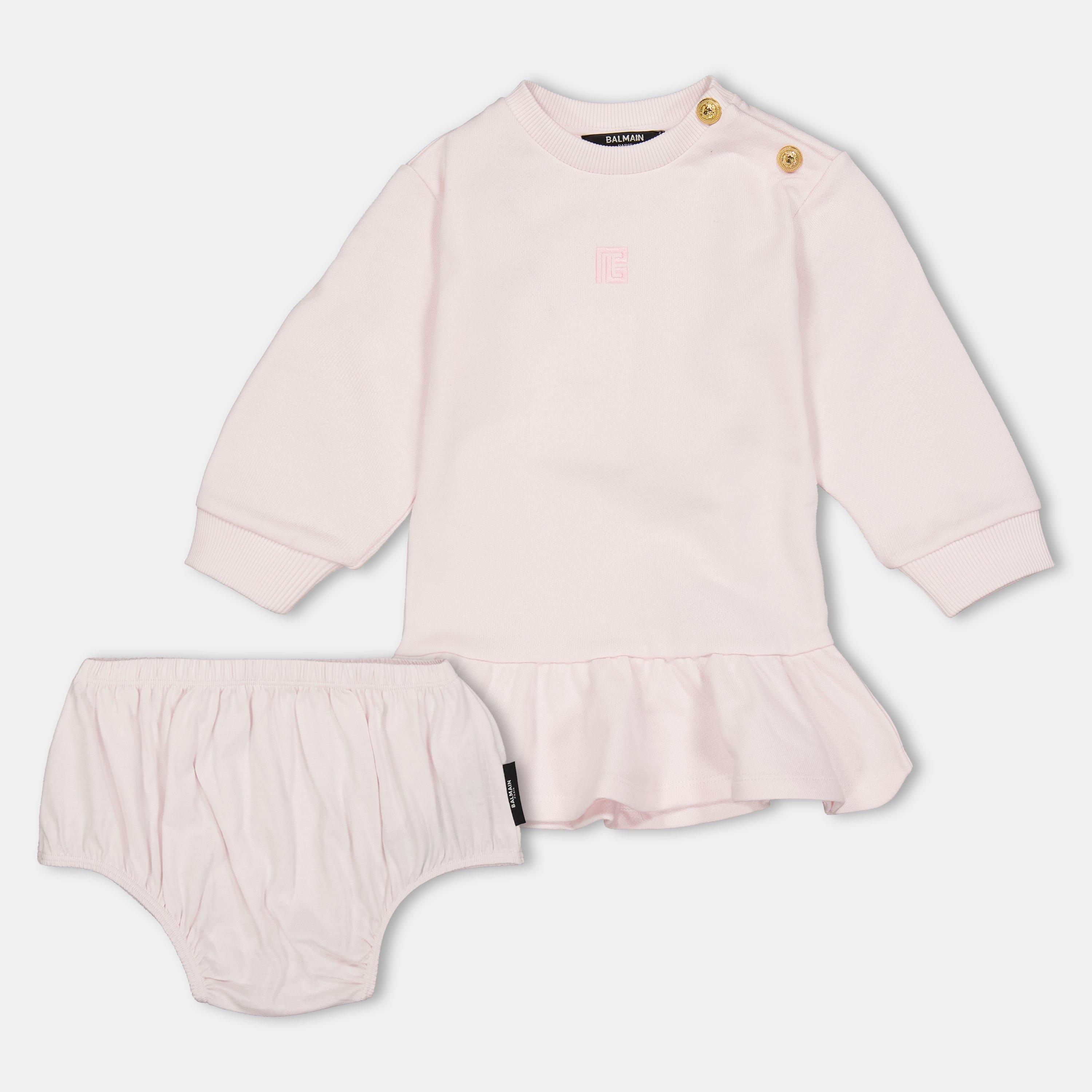 The Balmain Kids' Logo Knit Jumper Dress features prominent branding on a structured shape designed for everyday comfort. Made from soft knit, this dress delivers warmth with a quality finish that transitions smoothly through the day.