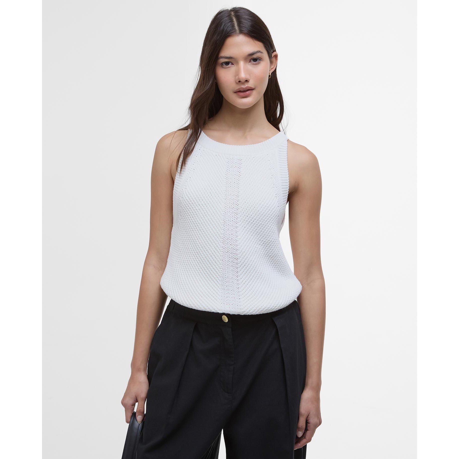 Ribbed trims at the neck and armholes for a polished look.