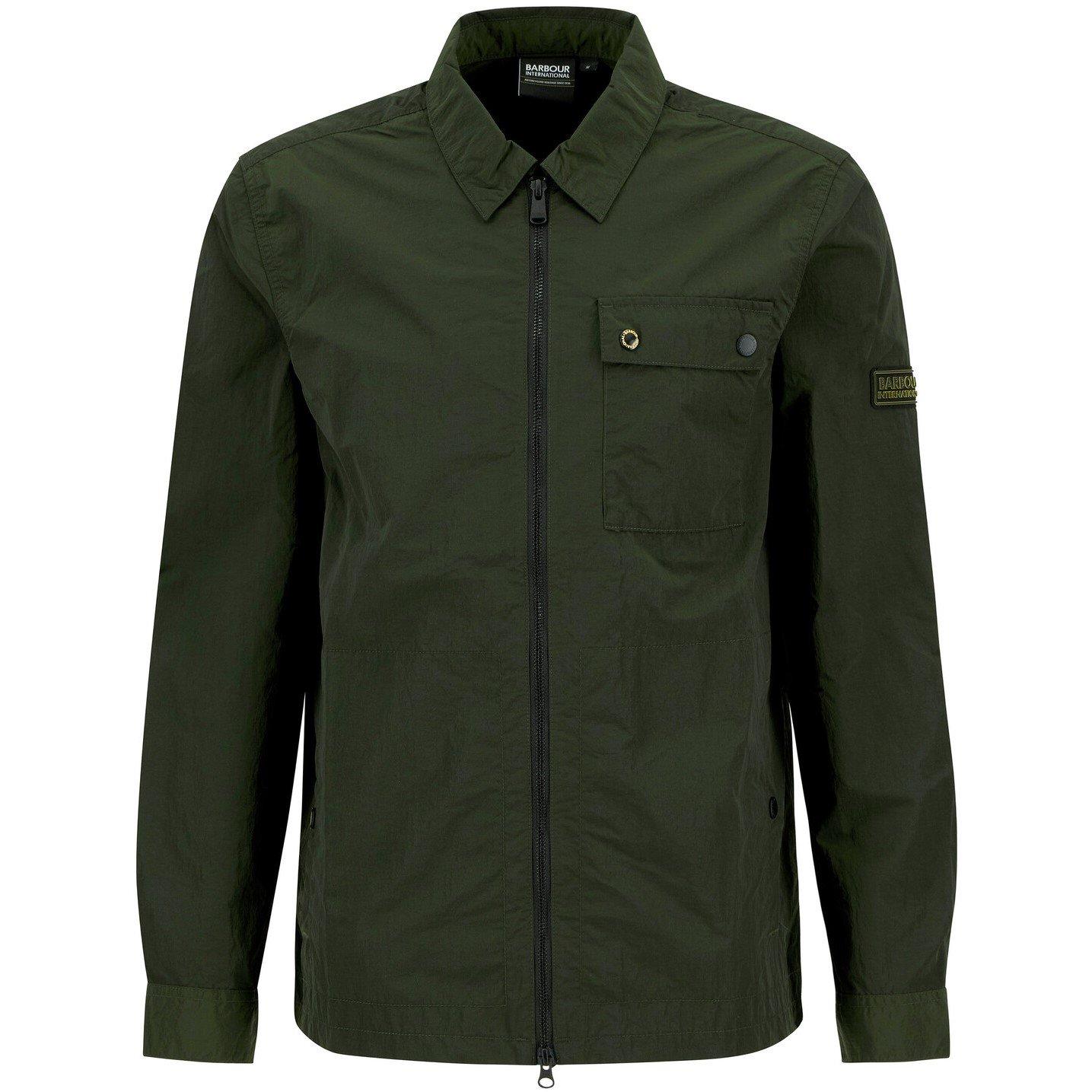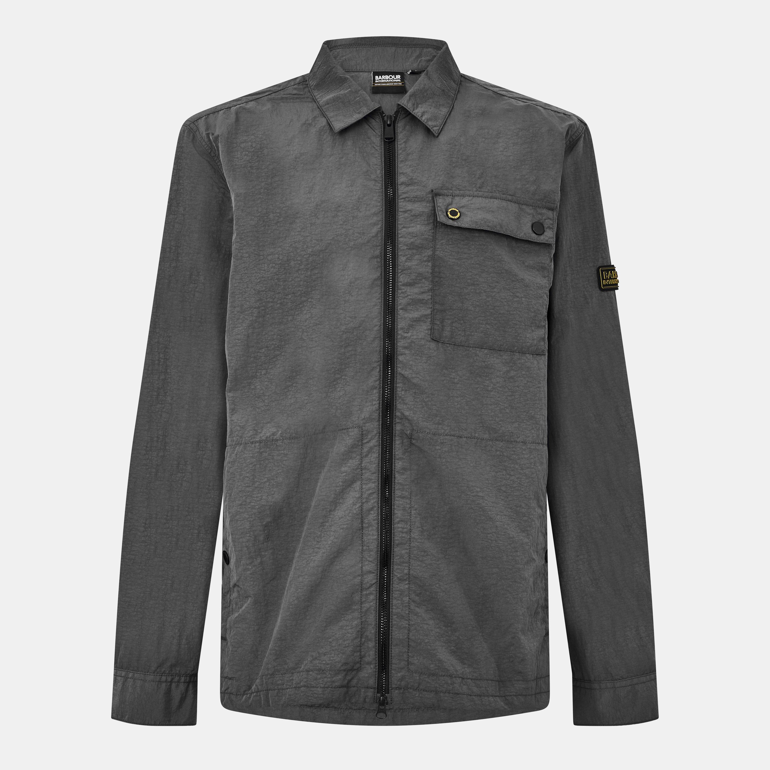 Barbour International's Men's Inline Long Sleeve Overshirt offers modern functionality with practical design for today's fashionable wearer. The zip-through style features a chest pocket with snap button detailing, while the lightweight design makes it easy to wear with other pieces. The Barbour International badge on the sleeve and classic point collar complete this classic overshirt.