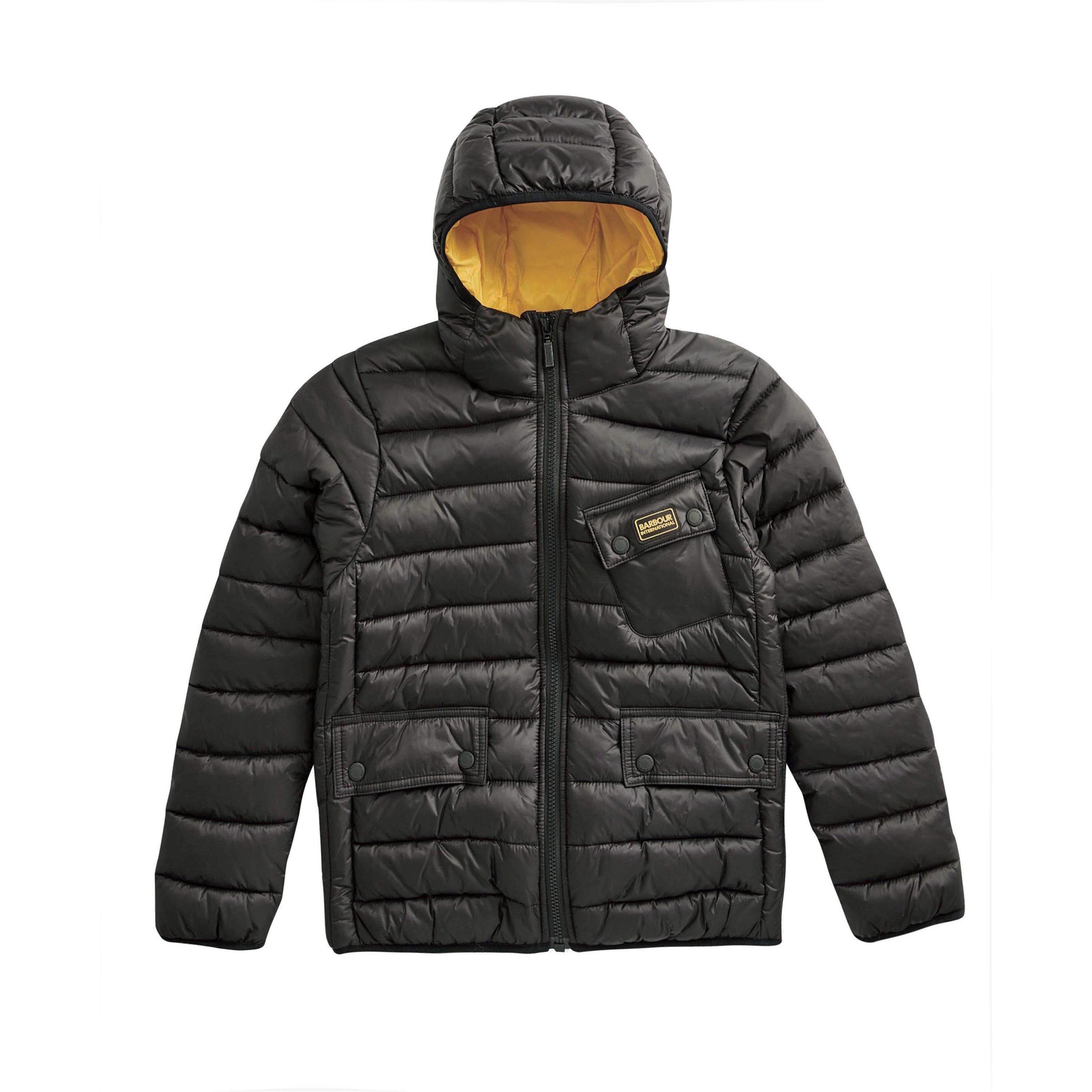 Barbour International's Kids' Ouston Water Resistant Puffer Jacket delivers heritage-inspired protection with contemporary style. This oversized fit design features a fixed hood and angled chest pocket adorned with the Barbour International badge, while the practical two-way zip ensures easy wear for active youngsters.
