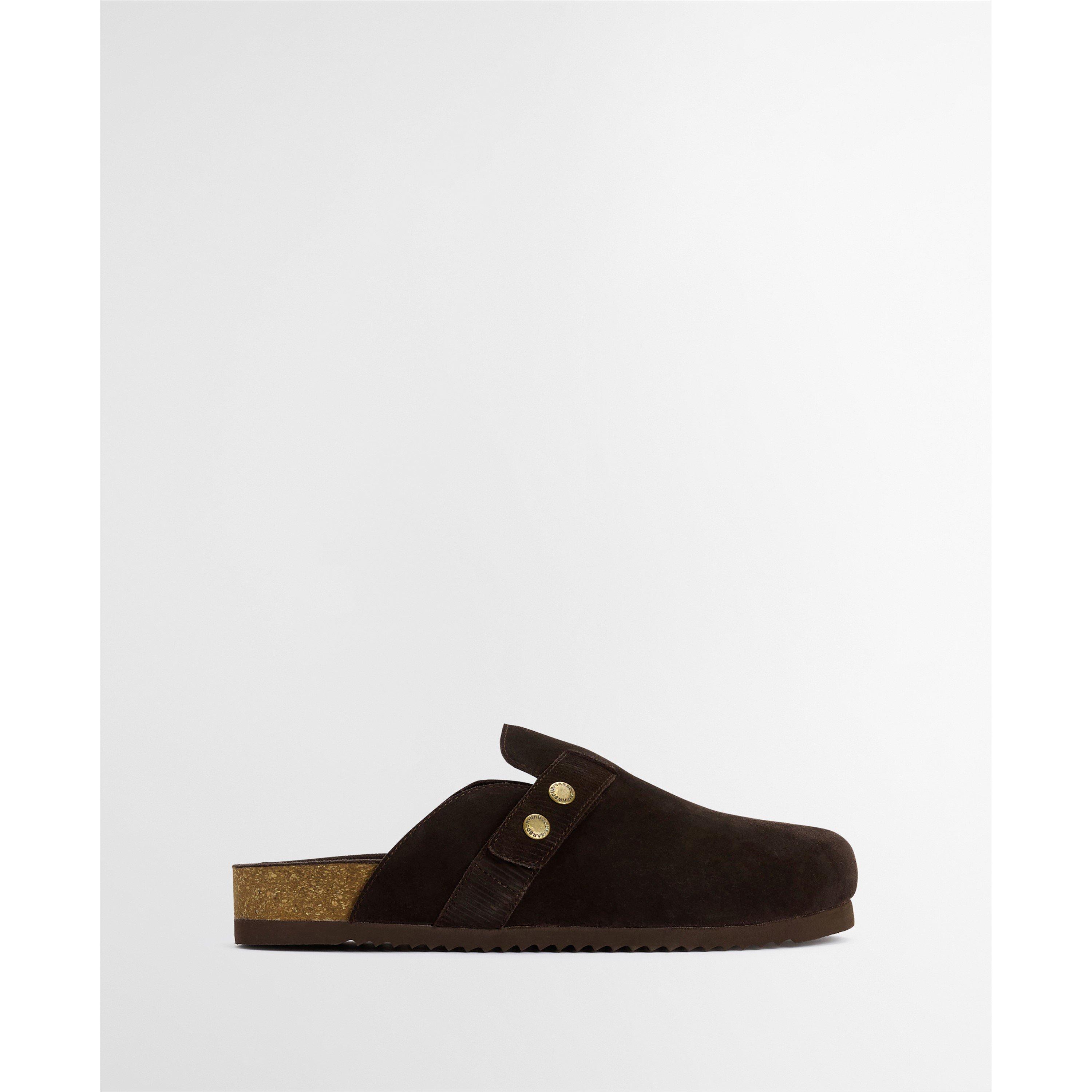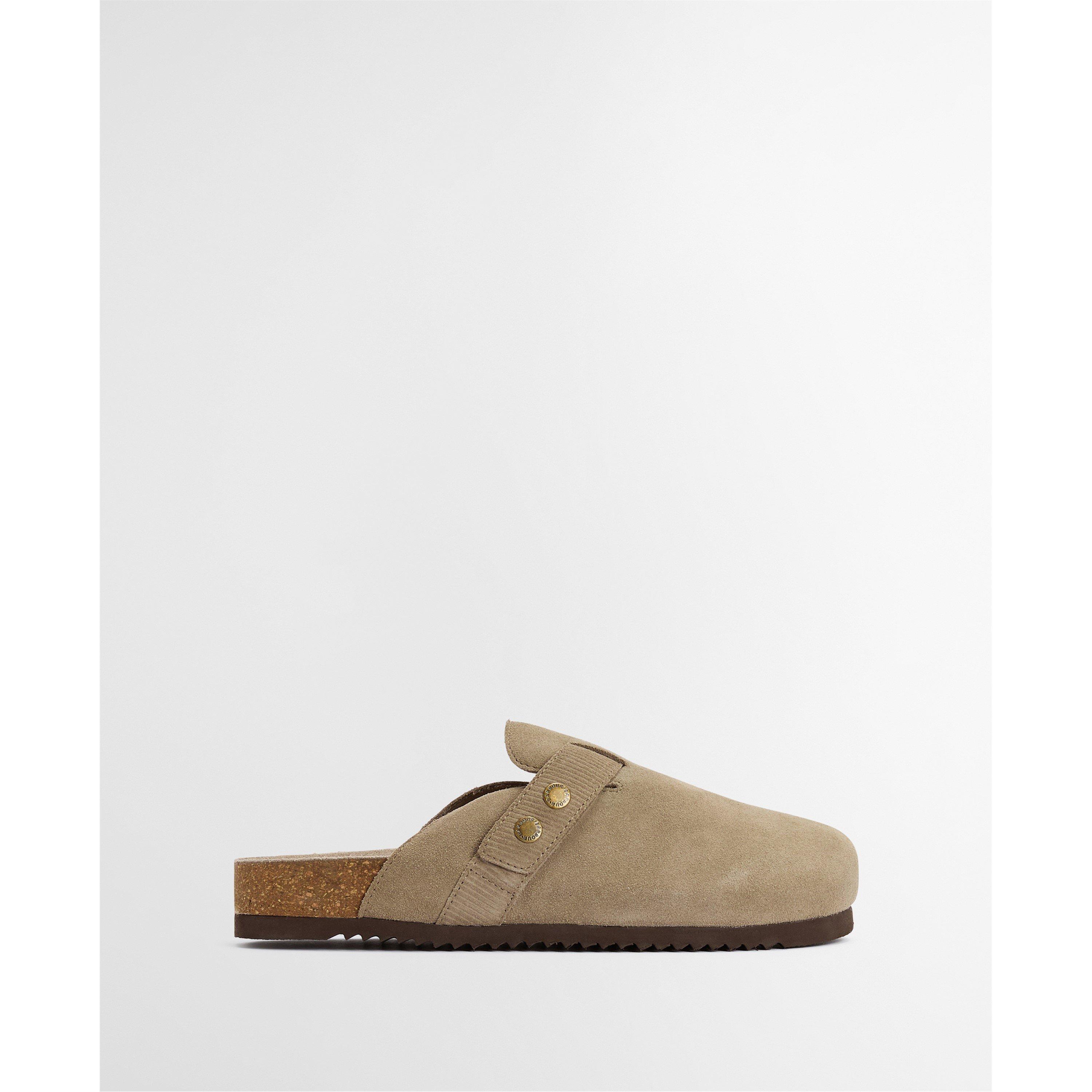 The Barbour Bowman Suede Mules offer a stylish twist on classic comfort. Featuring a closed-toe design with signature Barbour snap fastenings, these mules sit on a rugged razor-tooth outsole for grip and durability. With a real cork footbed, they provide natural support and cushioning - perfect for effortless, all-day wear.