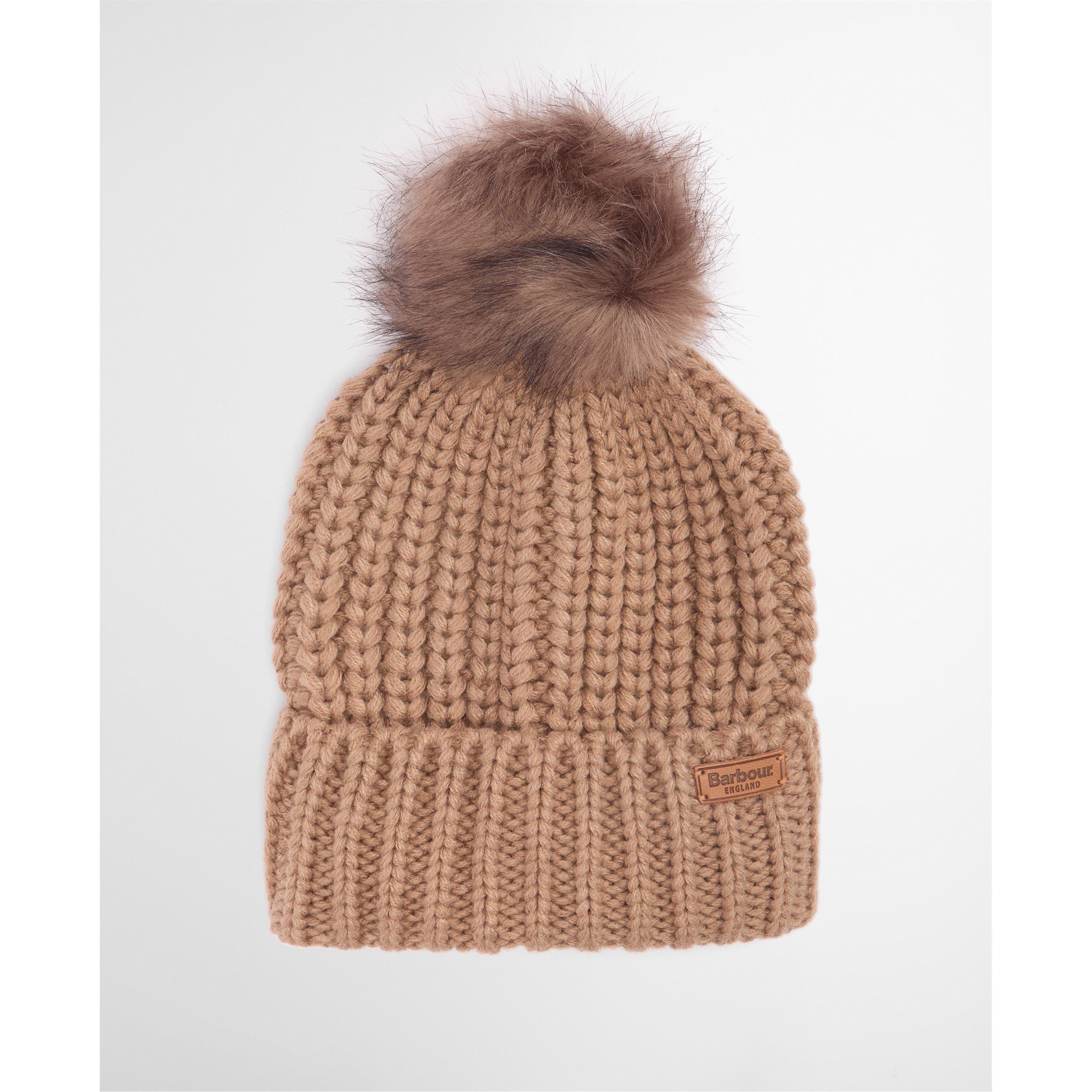 The faux-fur pom at the top creates a playful touch.