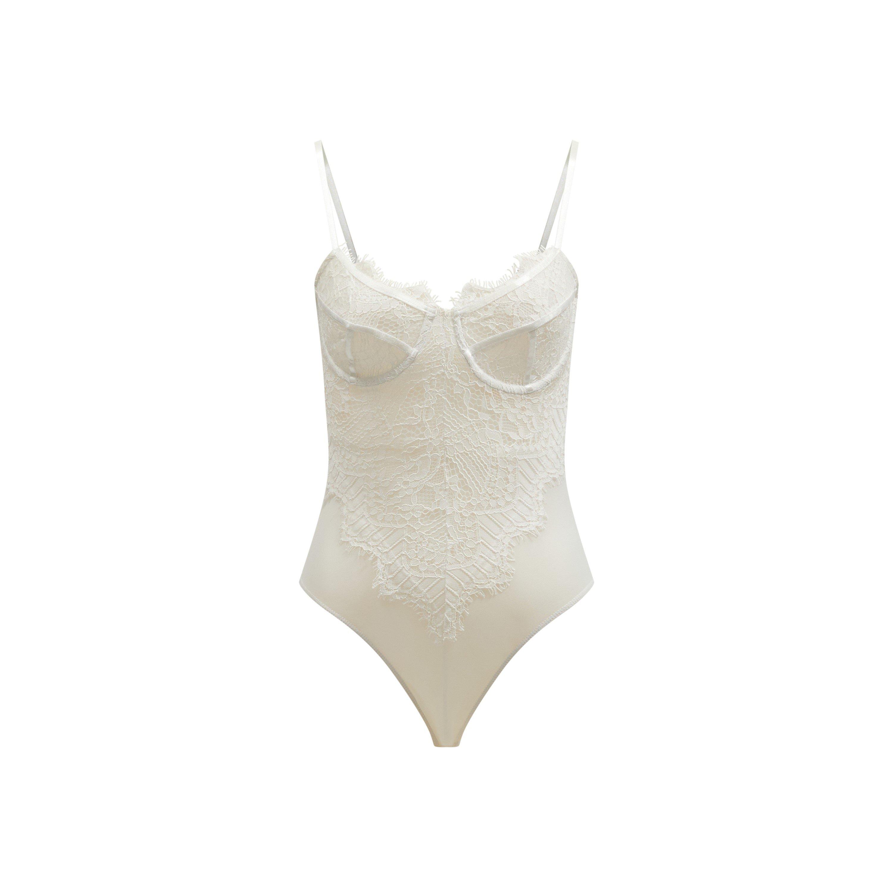 Bardot's Bitney Bodysuit merges sultry style with structured design, creating a modern piece. The sheer form features lace elements, while the moulded cups with underwire create a defined shape and supportive fit.