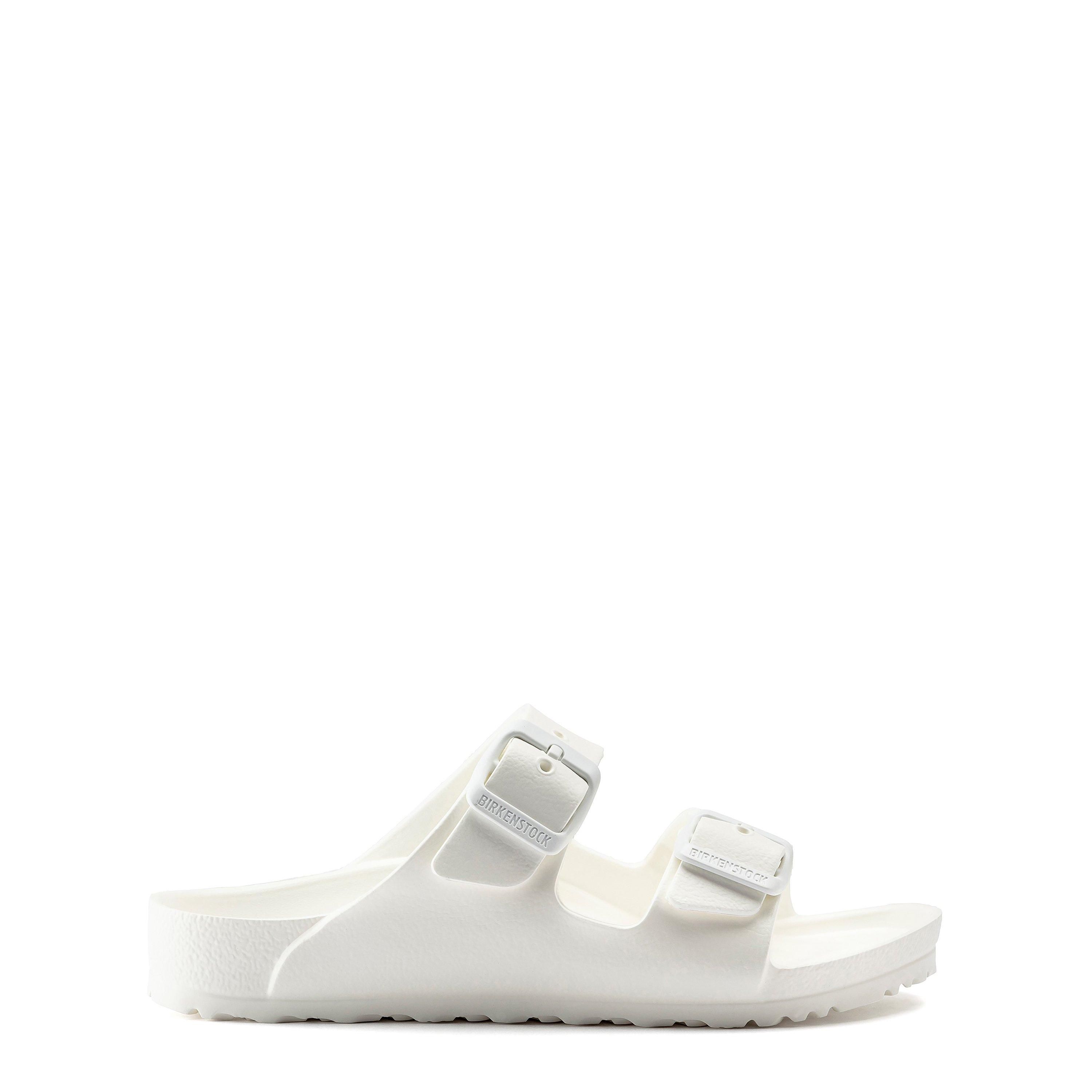 Elevate your little one's footwear collection with the Children's Arizona Sliders by Birkenstock. Crafted from 100% EVA, this double-strap design sits upon an anatomically shaped foot bed for a comfortable wear. Offering a lightweight and durable design, this piece is finished with an embossed Birkenstock brand logo to the buckle and upper for a designer finish. Upper, Lining, and Sole: synthetic.