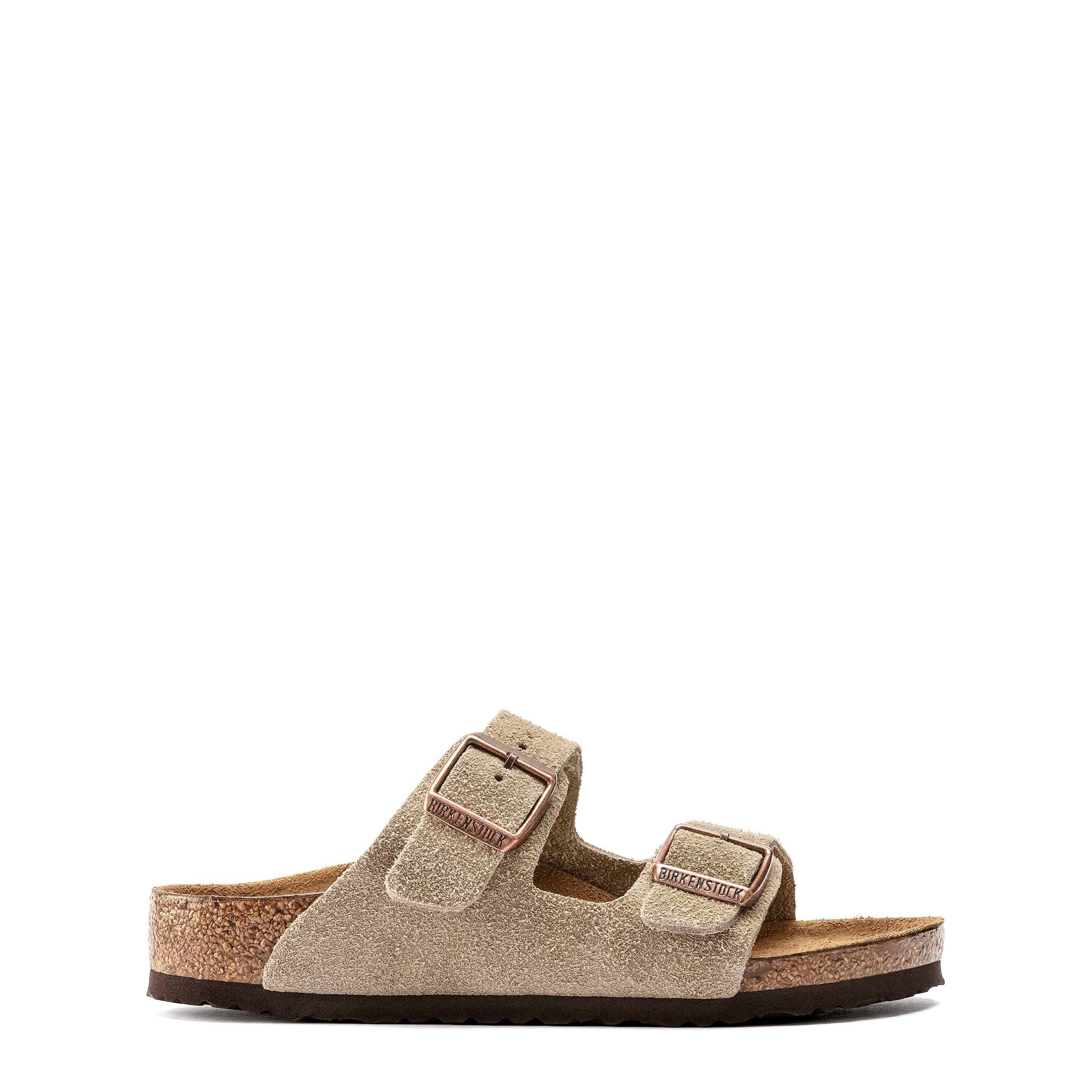 These Arizona Suede Sandals from Birkenstock will bring a hint of vintage appeal to your little one's day time style. Designed in a soft suede leather construction, these sandals have been designed with an open round toe, adjustable pin-buckle straps, a moulded cork foot-bed and a synthetic sole underfoot. Complete with branding to the side and buckles, this simple yet sleek shoe will be the finishing touch to all your summer looks. Upper and Lining: leather. Sole: synthetic.