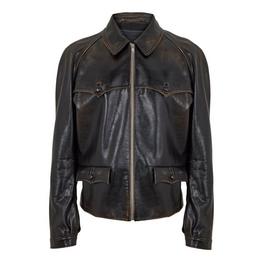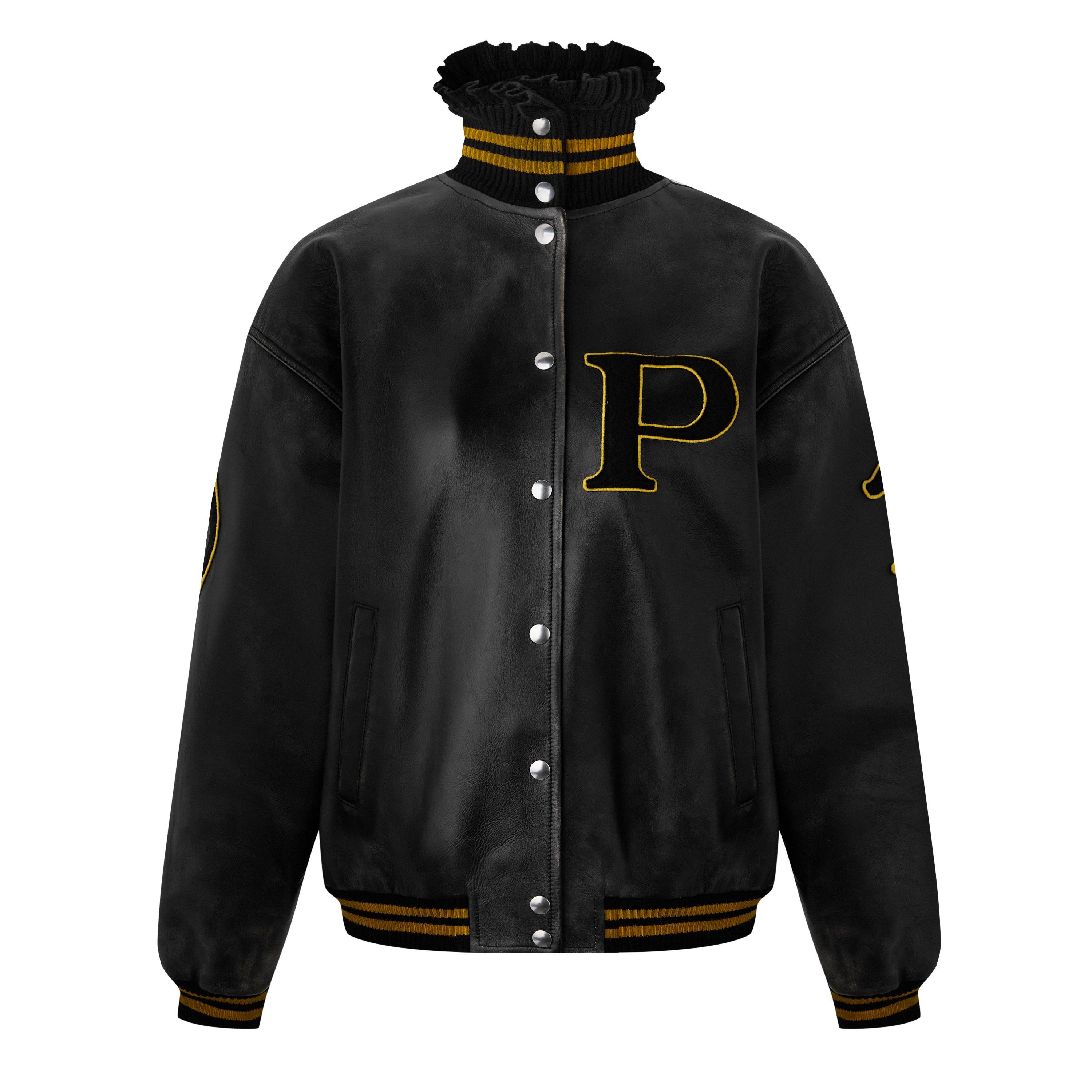Women's Varsity Bomber Leather Long Sleeve Jacket
