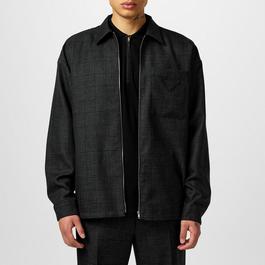 Women's Wool Check Print Long Sleeve Cropped Overshirt