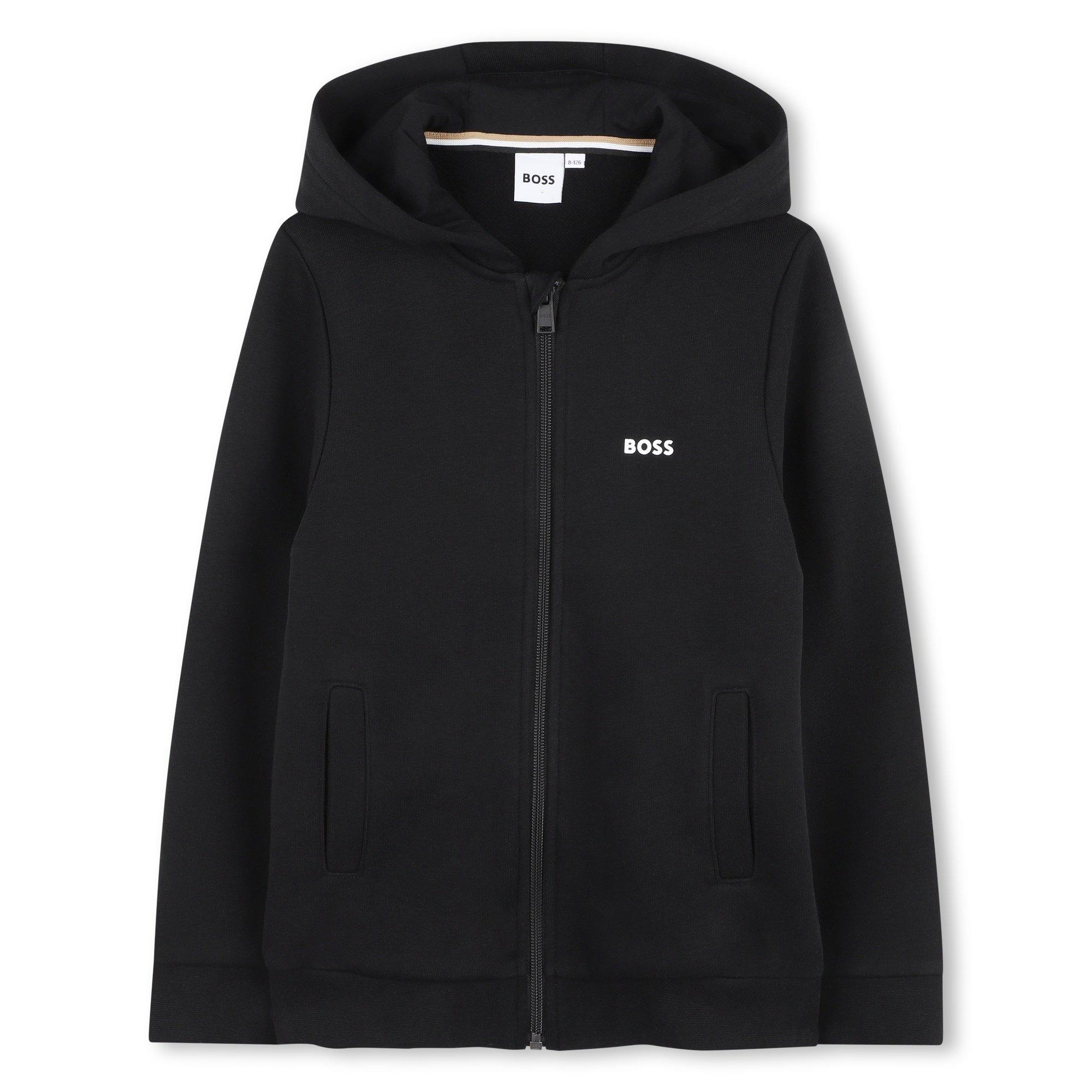 The BOSS Kids' Logo Zip Hoodie is built with a zip-through design and athletic-inspired details. Clean lines give it a straightforward, everyday look.