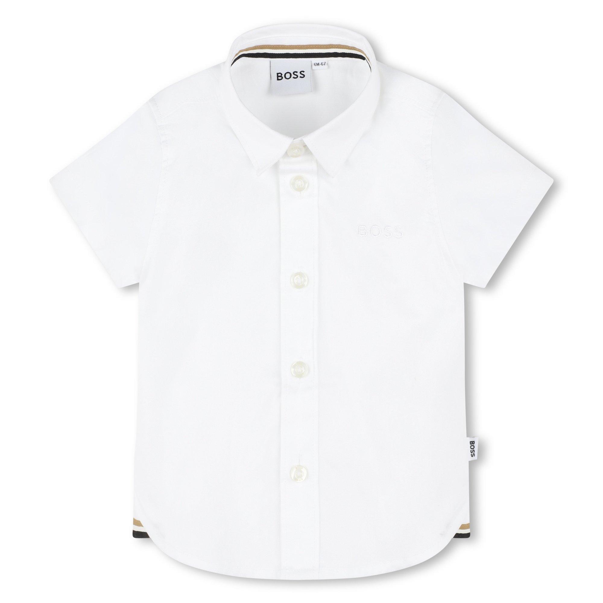 The BOSS Short Sleeve Shirt brings smart styling to infant wardrobes. Combining casual style with comfort, this design features short sleeves and button details that add options to any little one's collection.
