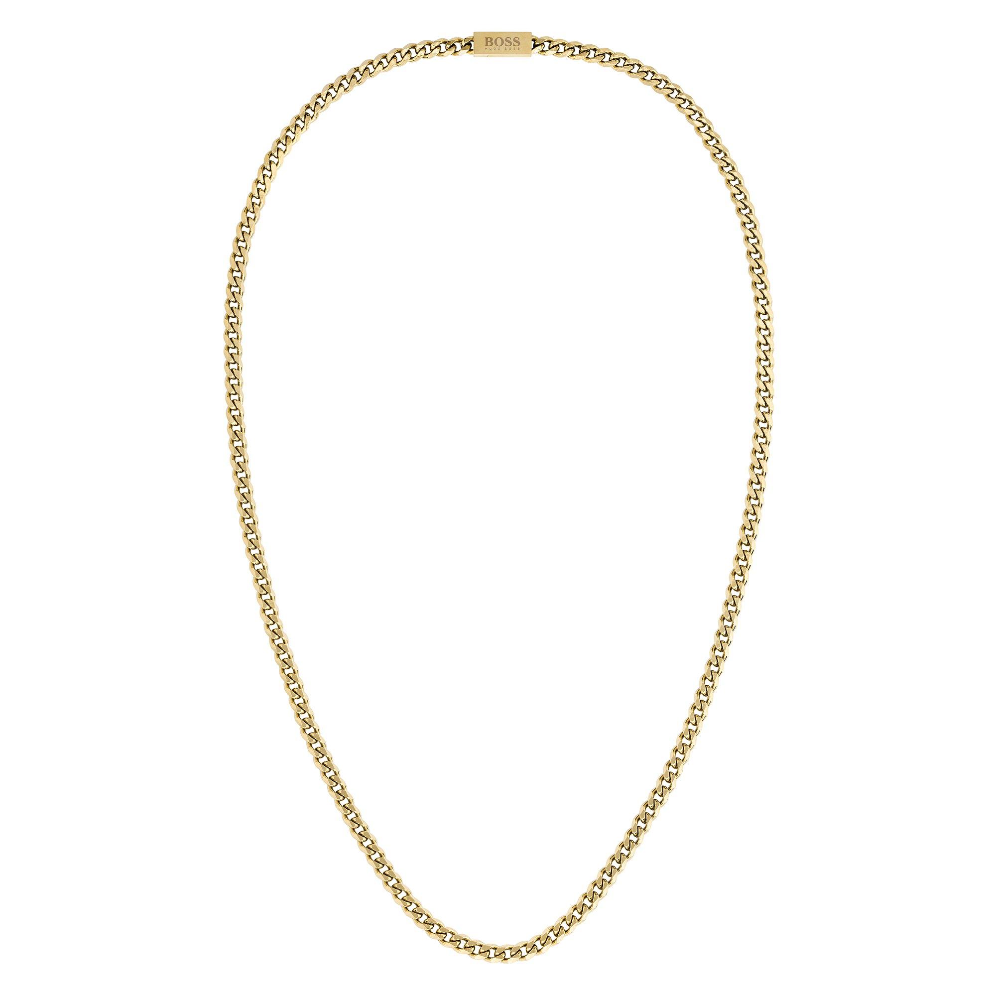 The BOSS Chain Necklace brings sleek style with its sleek metallic finish and magnetic closure. This designer piece pairs well with other accessories, offering multiple wear options that complement everyday looks.