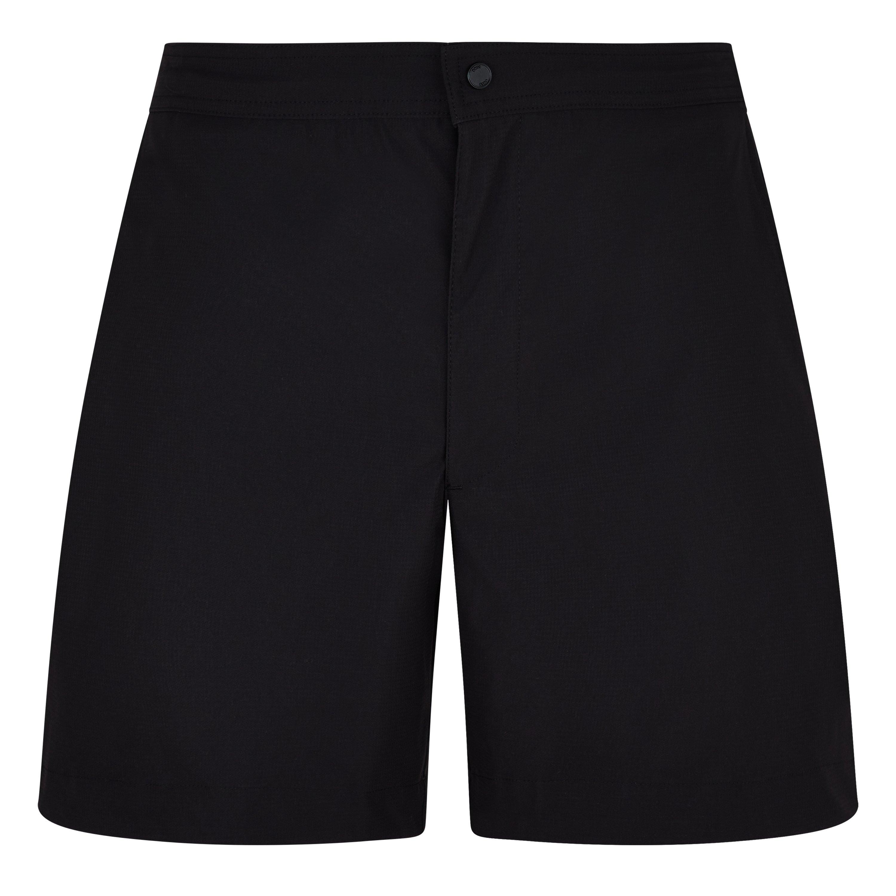 The BOSS Dean Swim Shorts are designed for poolside and beachside wear, featuring twin slit pockets and a secure touch-fasten back compartment.