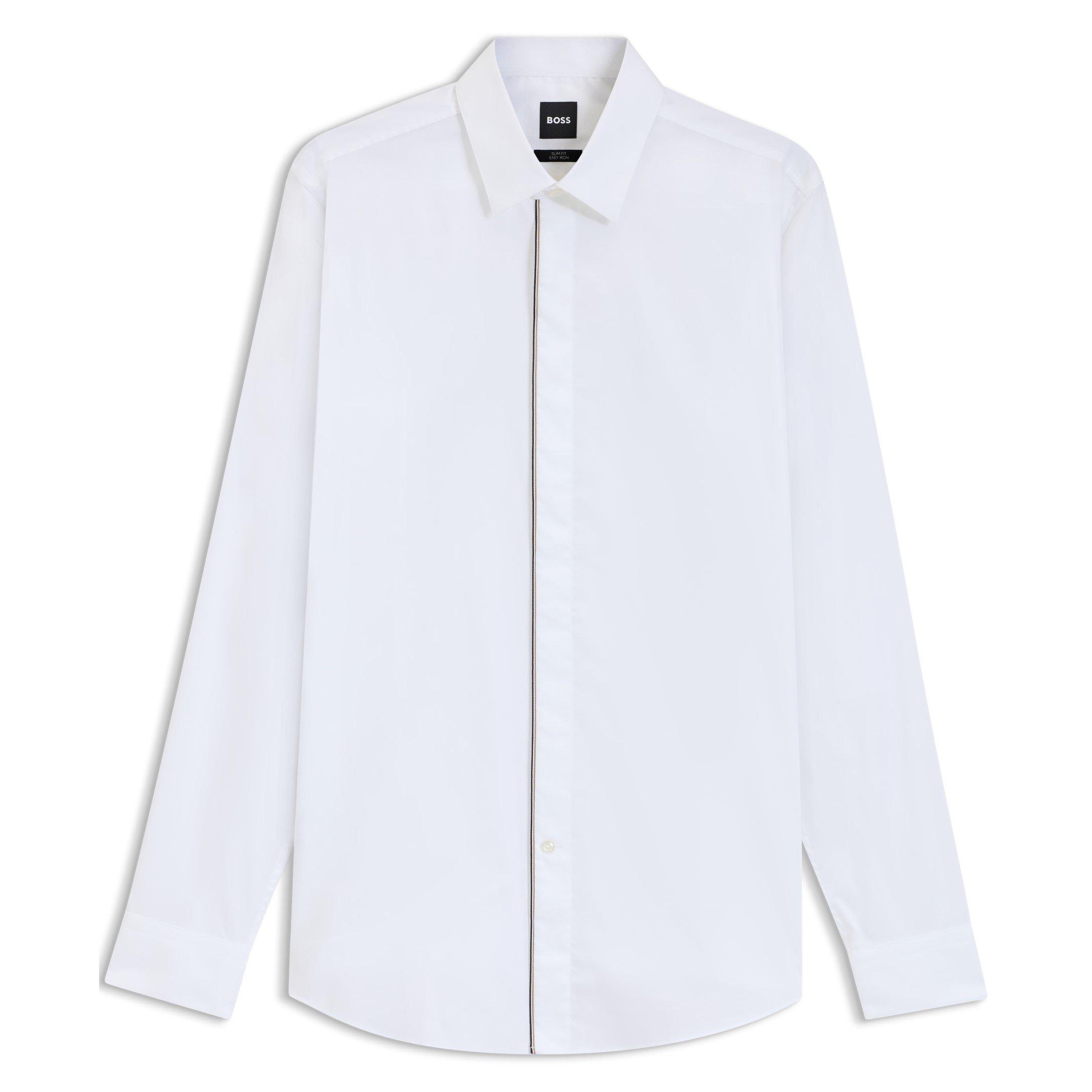 The BOSS H-Hank-Party Shirt brings a patterned design to a long-sleeve cut. The fit stays sharp and tailored for straightforward wear.