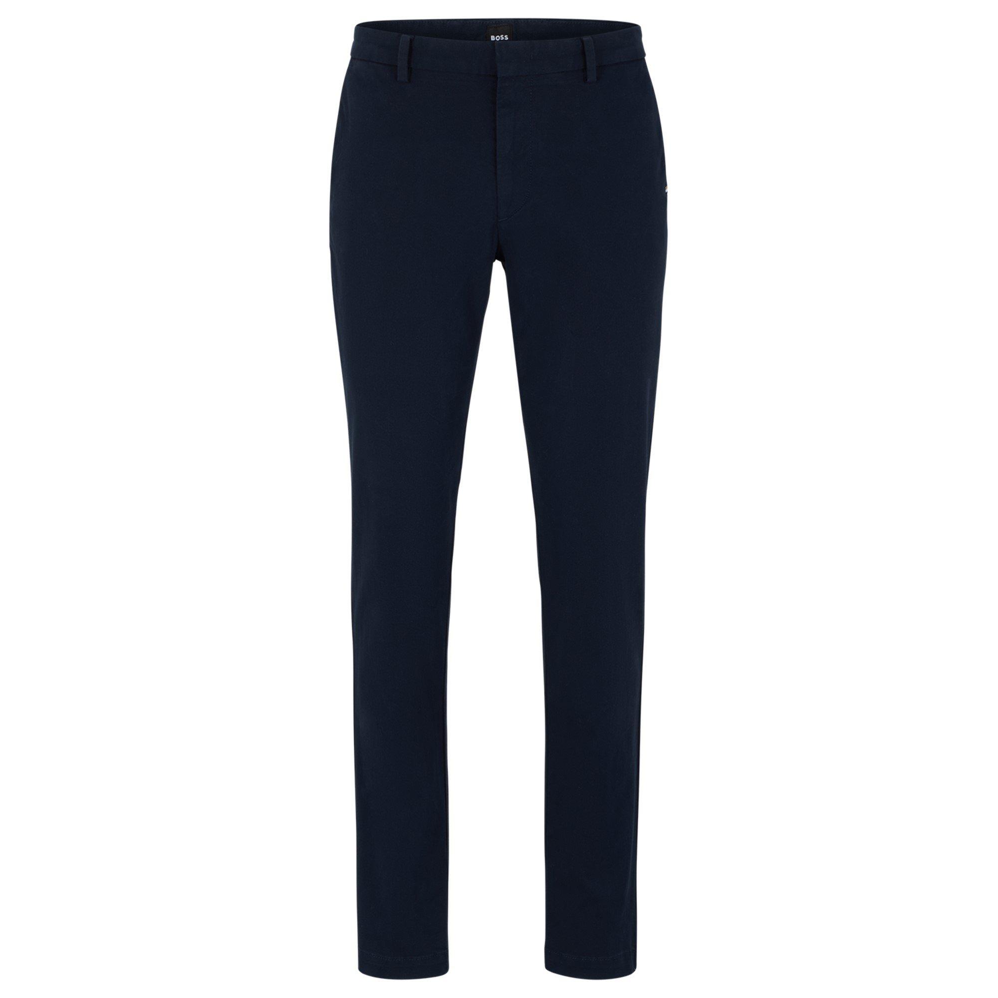 The BOSS Kaiton slim-fit chinos balance modern tailoring with all-day comfort. Their streamlined profile transitions seamlessly from office environments to evening occasions, while the high-quality build ensures these trousers maintain their shape with continued wear.