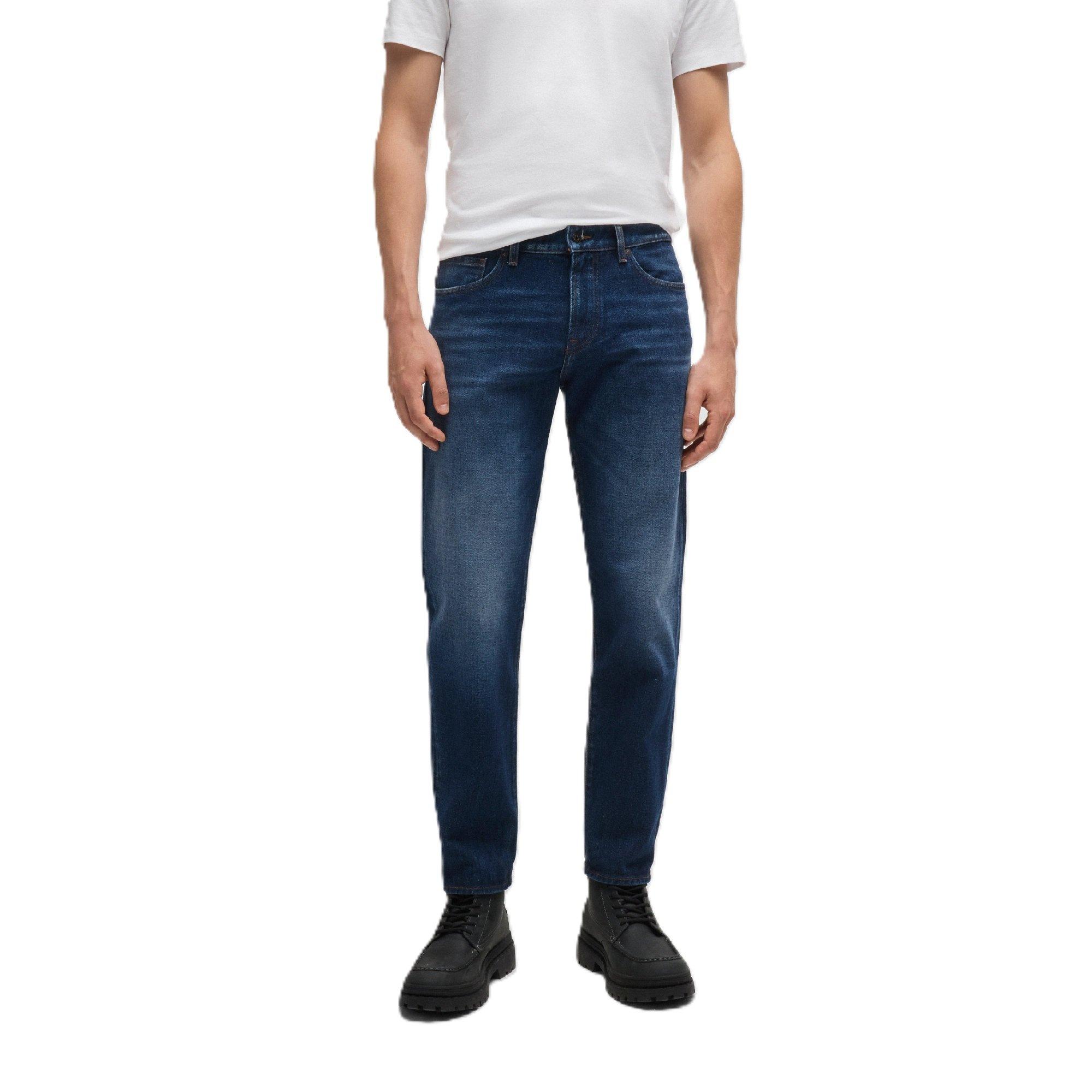The BOSS Re.Maine Bo Slim Fit Jeans offer a streamlined profile. The cut maintains a clean, contemporary line from waist to ankle.