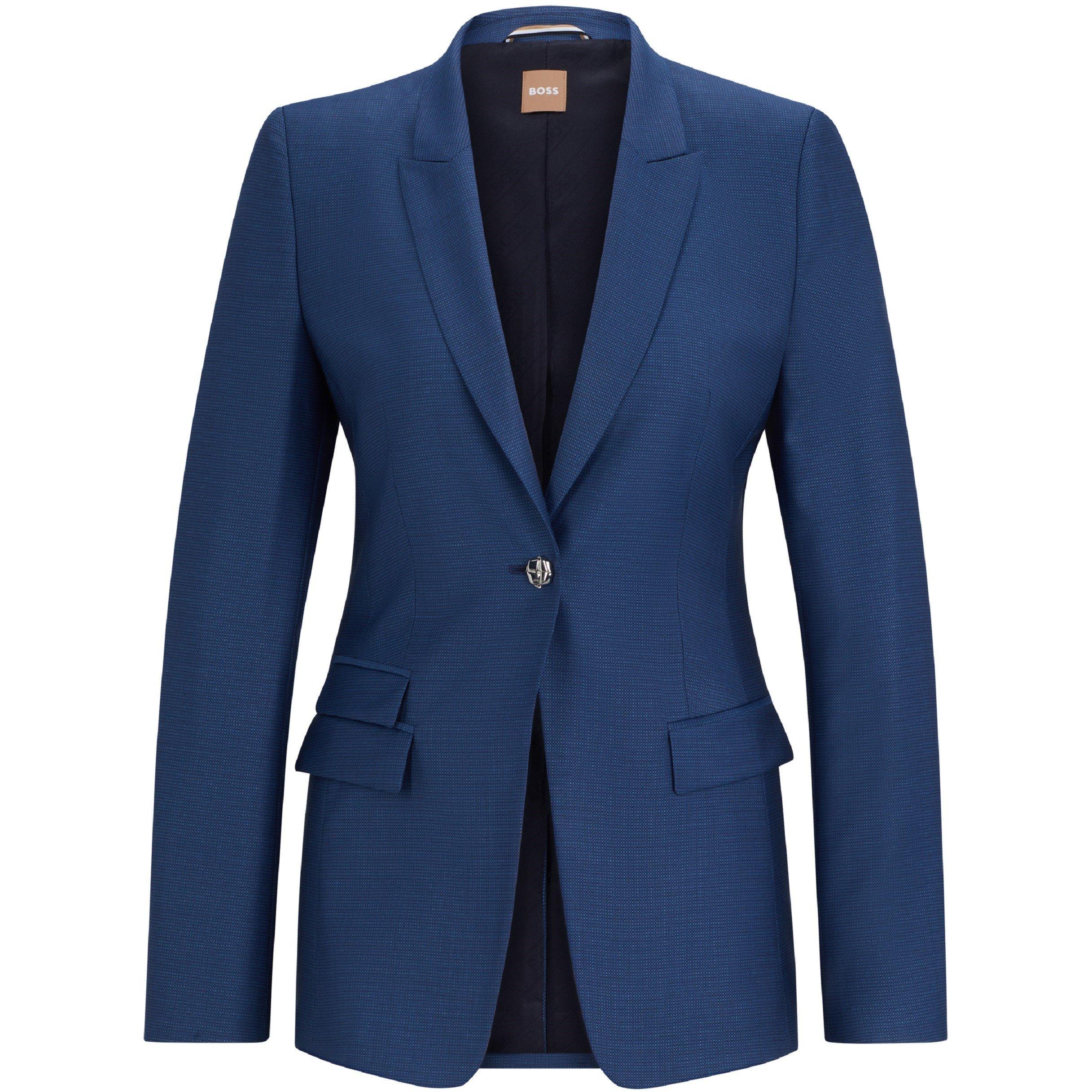 The Juicylara Jacket from BOSS offers tailoring with clean lines and a precise build. This piece features structured shoulders and a sleek shape that adds to its professional appearance.