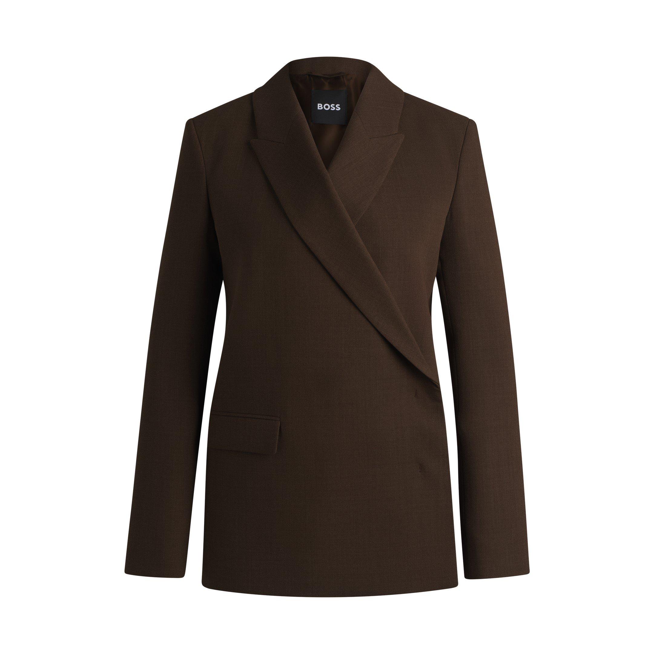 The BOSS Jaside Structured Jacket offers a professional look with its clean lines and structured design. This blazer features quality tailoring and fine closure details that create a sleek, contemporary profile ideal for professional wear and business settings.