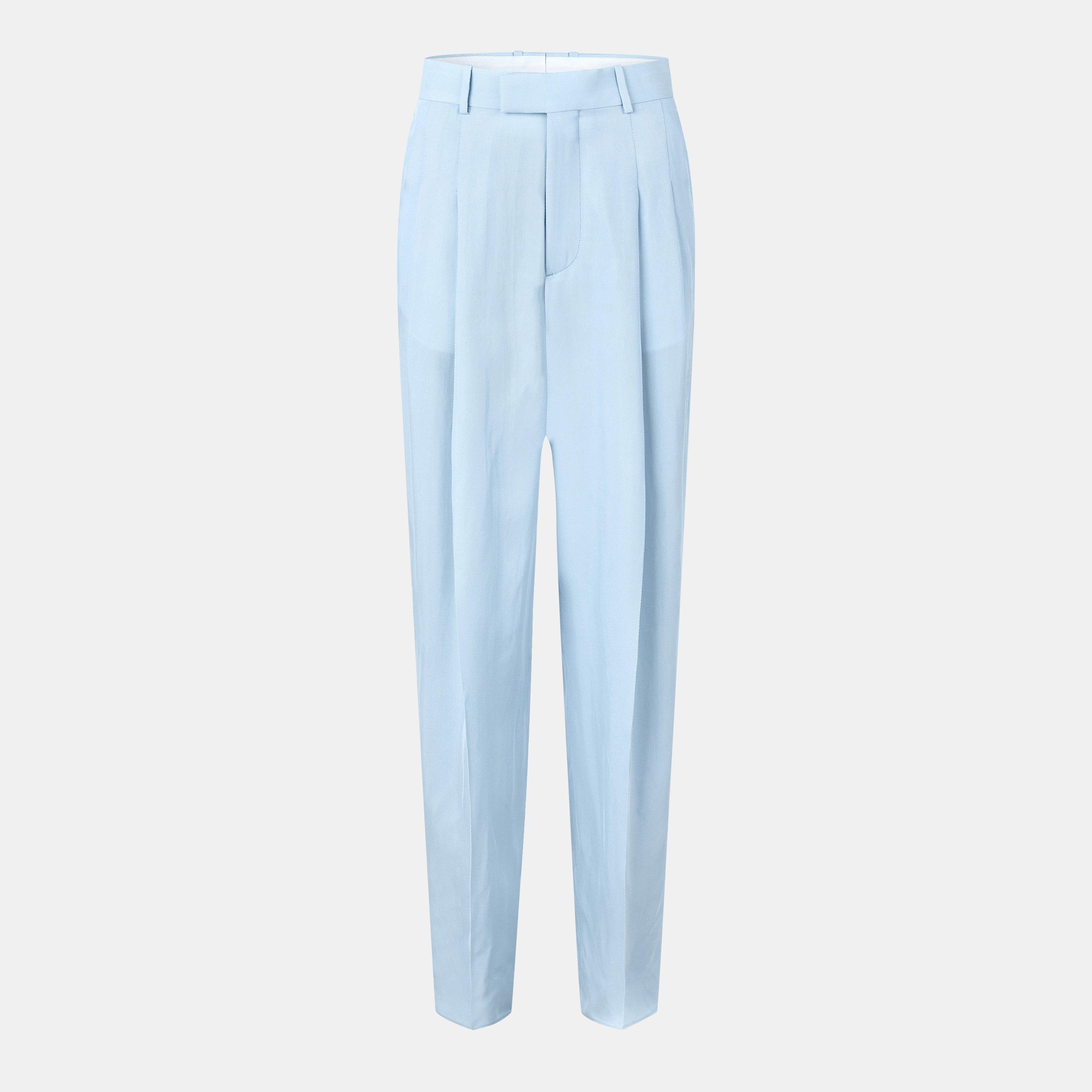 The Bottega Veneta Silk Twill Wide Leg Trousers feature a high waist that sits at the natural waistline. The wide-leg shape extends from hip to ankle for an uninterrupted look.