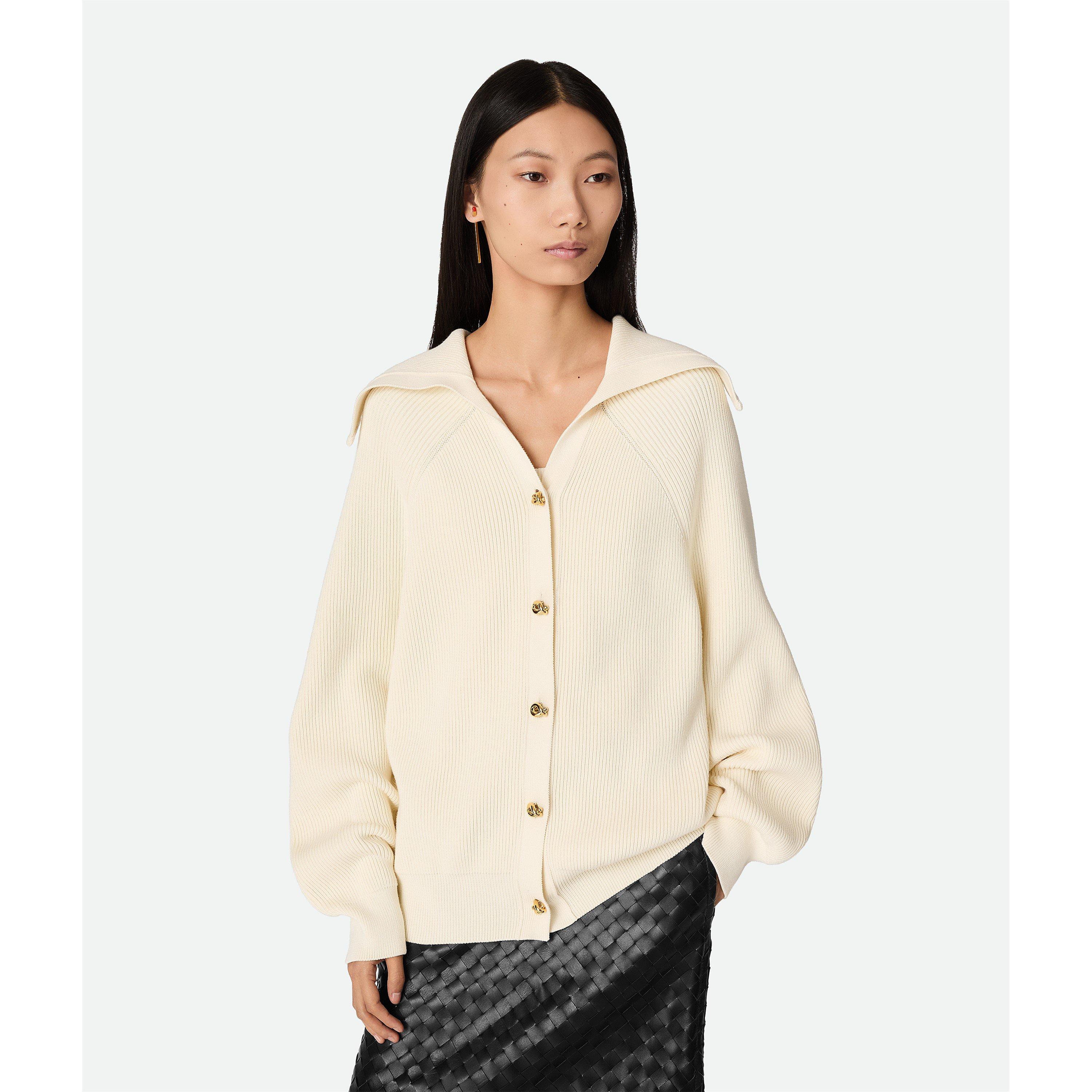 Bottega Veneta’s Cotton Rib Cardigan offers a perfect balance of style and comfort with its midweight cotton English rib knit. Featuring a button closure and a relaxed fit, this versatile piece adds sophistication to any wardrobe. Ideal for layering during cooler months, casual outings, or adding a refined touch to your everyday look.