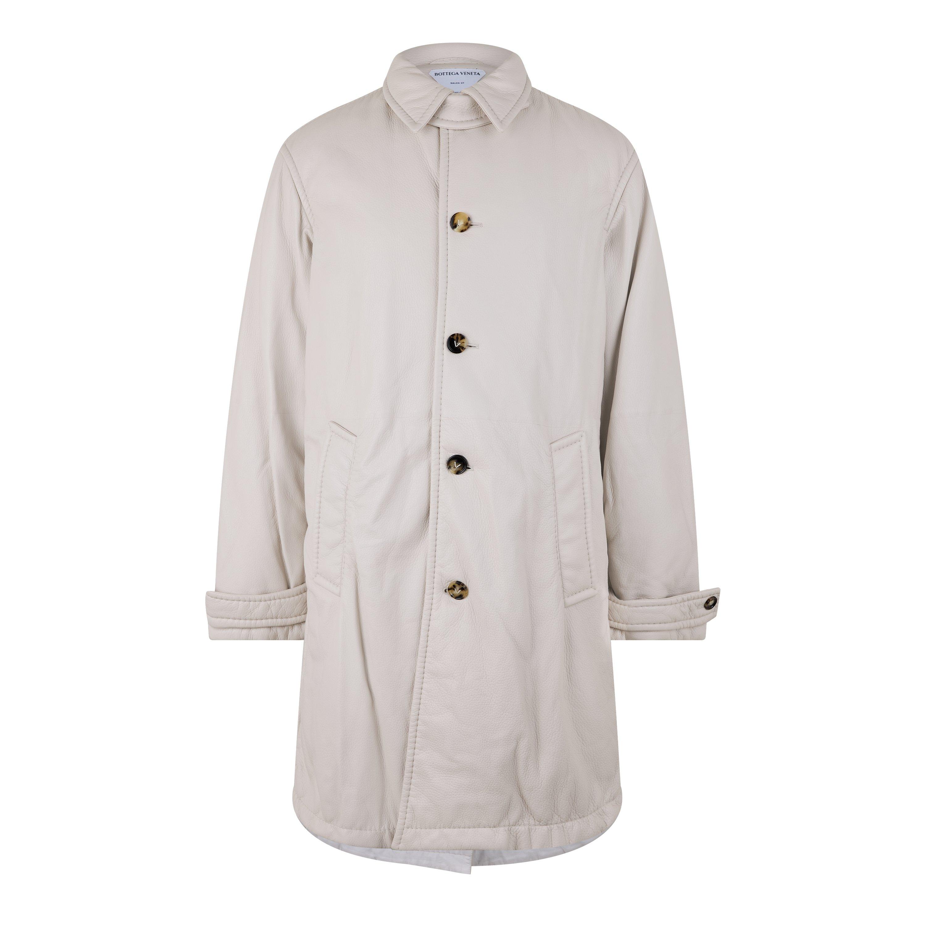 The Bottega Veneta Full-Grain Leather Slim Fit Jacket features hand-finished edges and precise tailoring. Its streamlined shape keeps a clean profile without excessive detail.