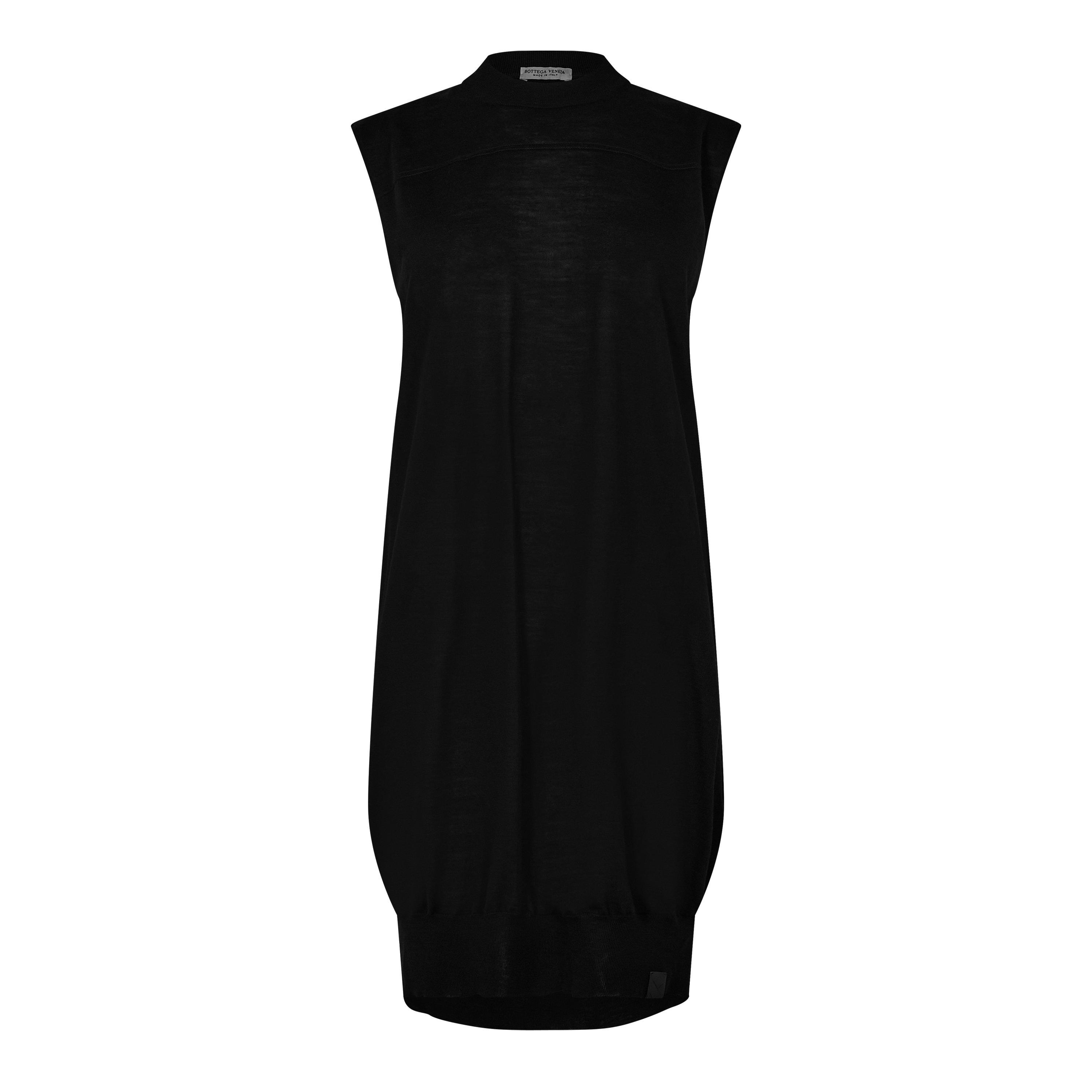 Bottega Veneta's shift dress features a clean, minimalist design. The tailored cut works well for various occasions, reflecting the brand's aesthetic.