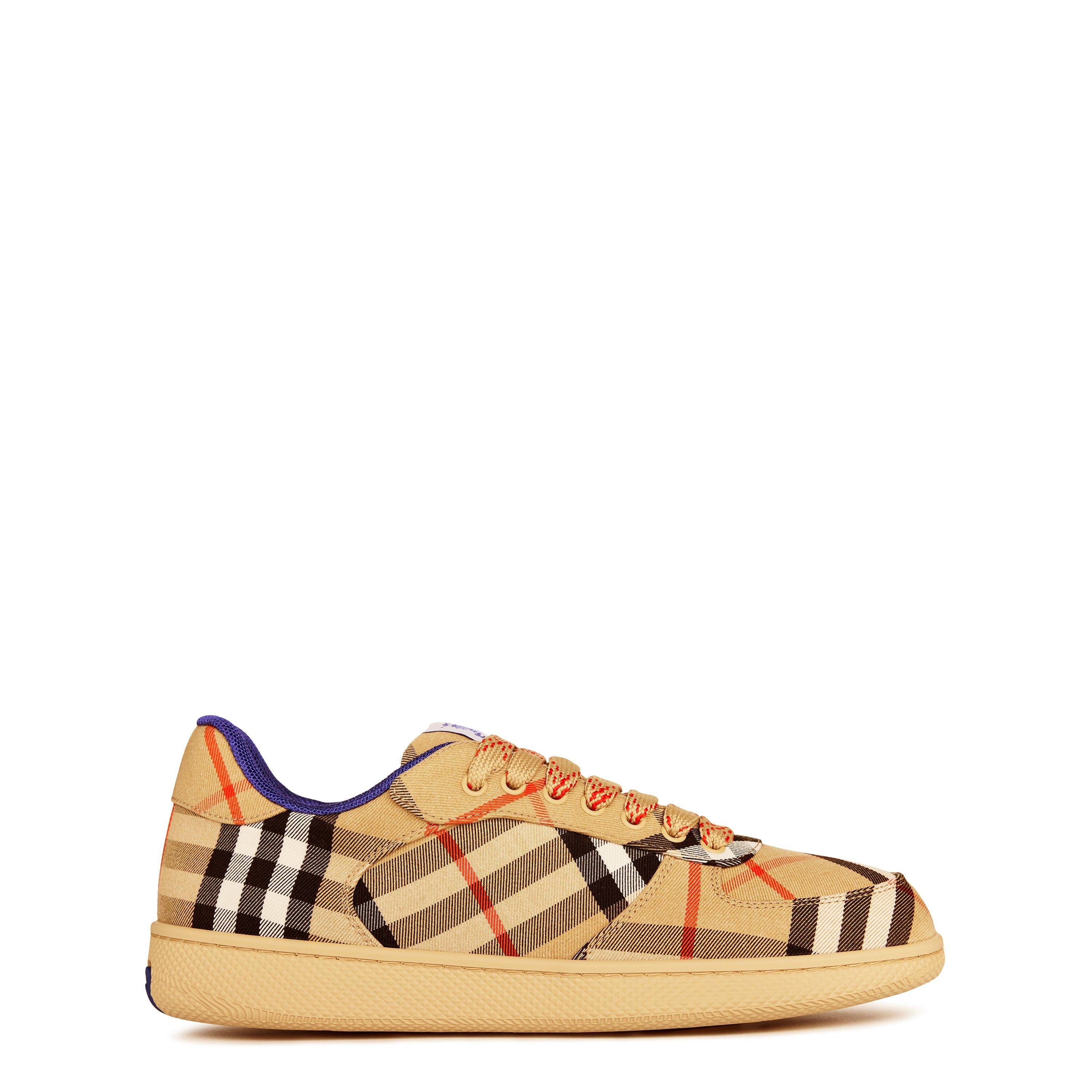 Celebrated for their distinctive designs and prestigious demeanour, Burberry boasts a high-end repertoire, expertly expressed in these Check Terrace Sneakers. With their classic silhouettes and iconic detailings these sneakers effortlessly elevate our everyday ensemble, making them a staple to your seasonal footwear rotation.
