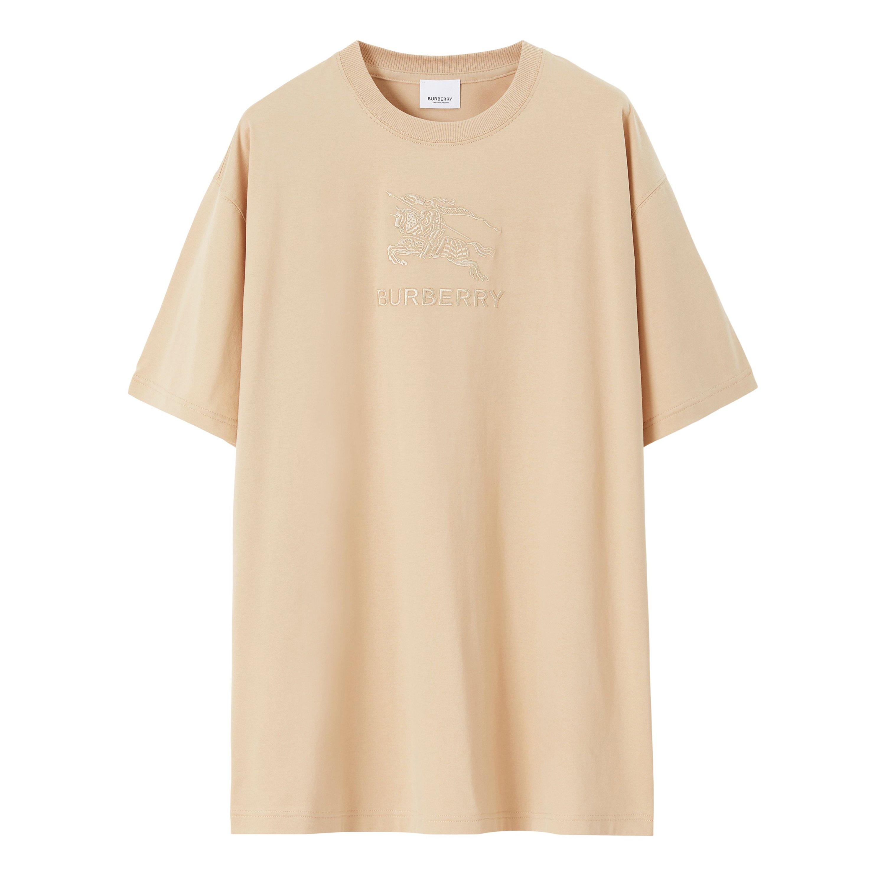 The embroidered tonal Equestrian Knight Design and Burberry lettering on the chest provides intricate detailing that adds a touch of timeless elegance, instantly elevating any outfit. Whether you're dressing it up for an evening soirée or simply pairing it with jeans for a relaxed day out, this piece effortlessly transitions from day to night, leaving you looking effortlessly chic and fashion-forward.