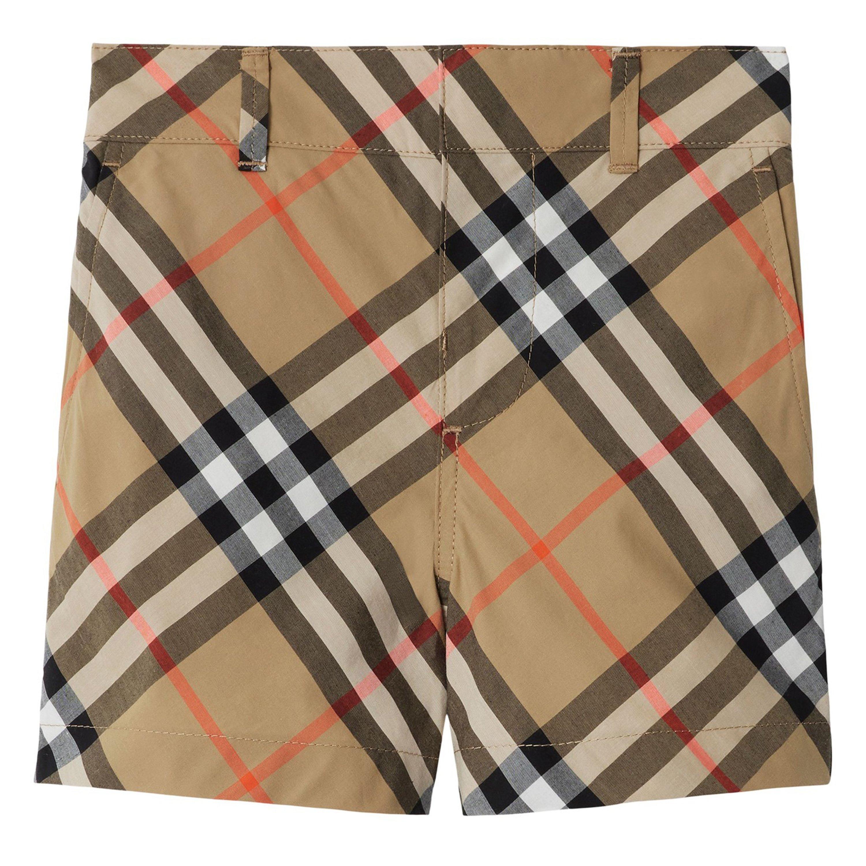 Burberry's Oscar Check Cotton Shorts blend timeless style with practical comfort for your little one's wardrobe. These woven kids' bottoms showcase the iconic chequer pattern in a refined slanted design, making them versatile for beach adventures or stylish city outings.
