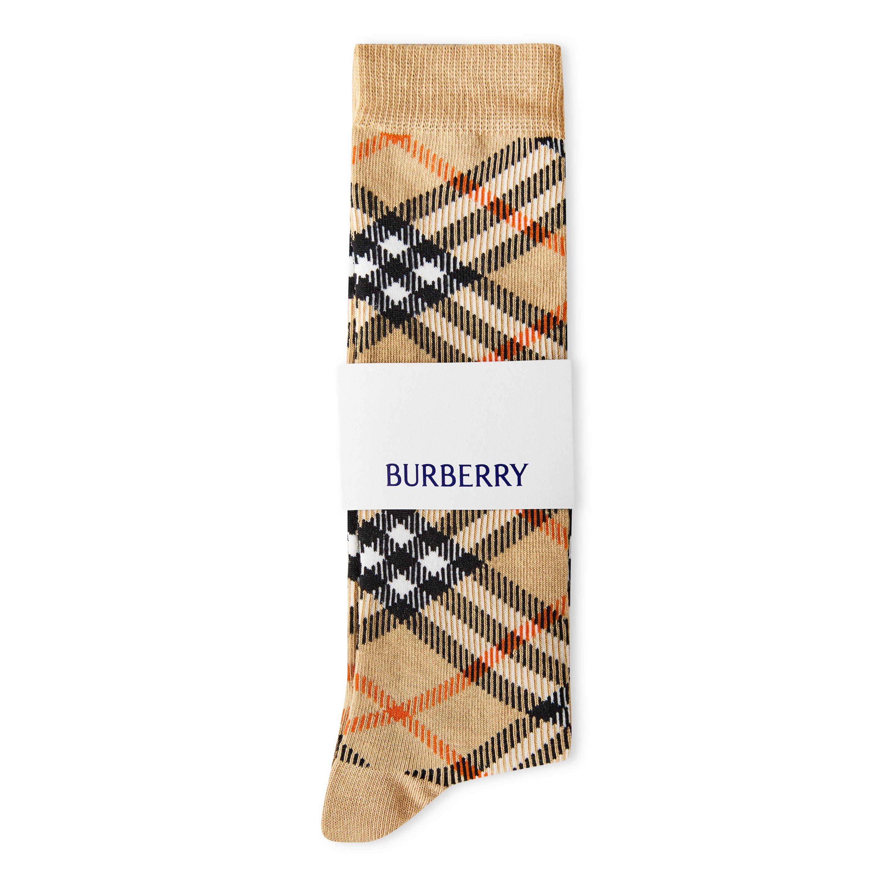 These stylish Burberry Check Socks bring classic luxury to your little one's everyday wardrobe. The knee-high design features the brand's iconic chequer pattern, perfect for adding sophistication to school uniforms or casual outfits. Whether paired with skirts, dresses, or shorts, these children's socks deliver both comfort and timeless British elegance.
