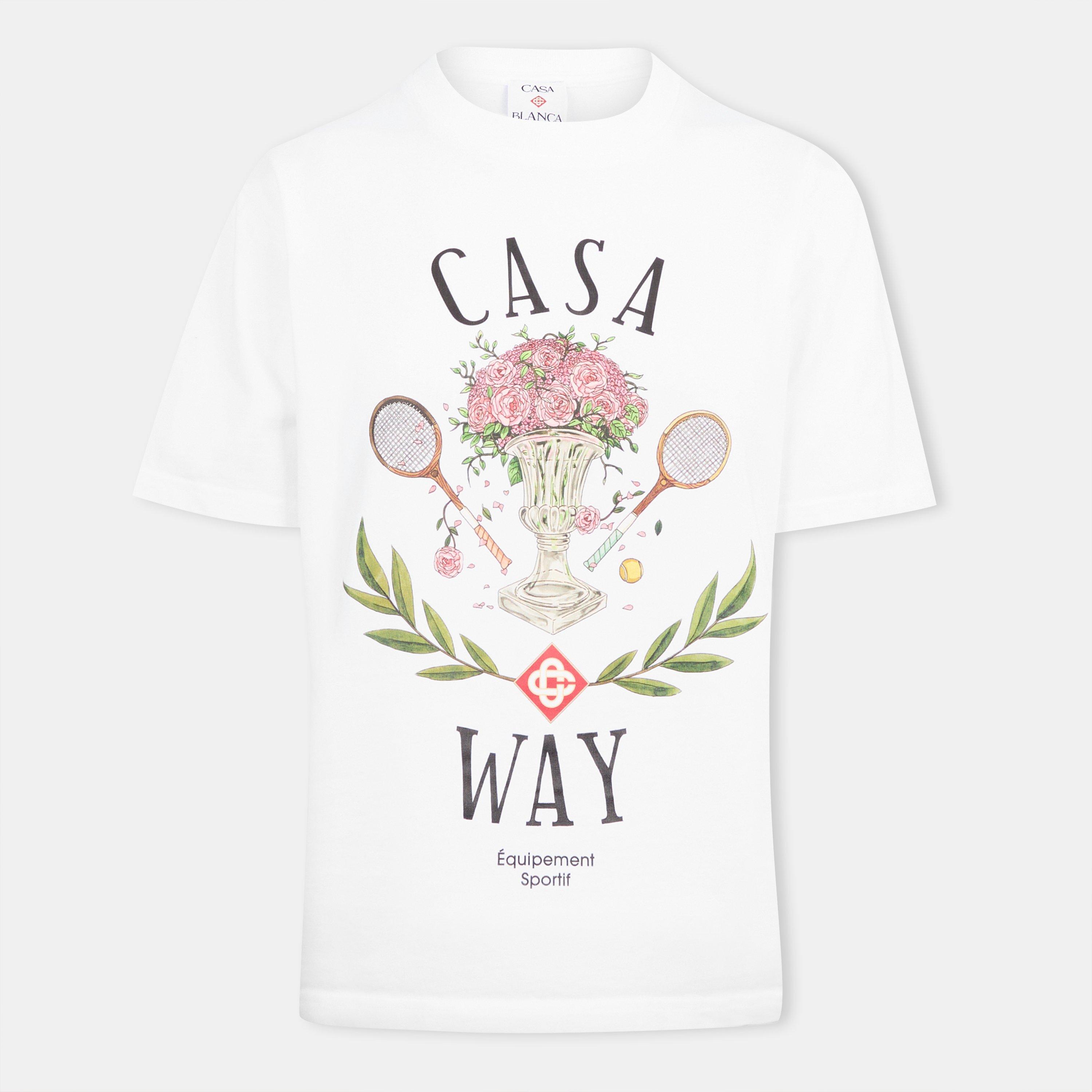 Casablanca's Casa Way Oversized Top delivers style with its roomy, structured shape. The clean-lined design features dropped shoulders for a relaxed look, while maintaining the brand's aesthetic through subtle logo detailing. This shirt embodies contemporary casual style.