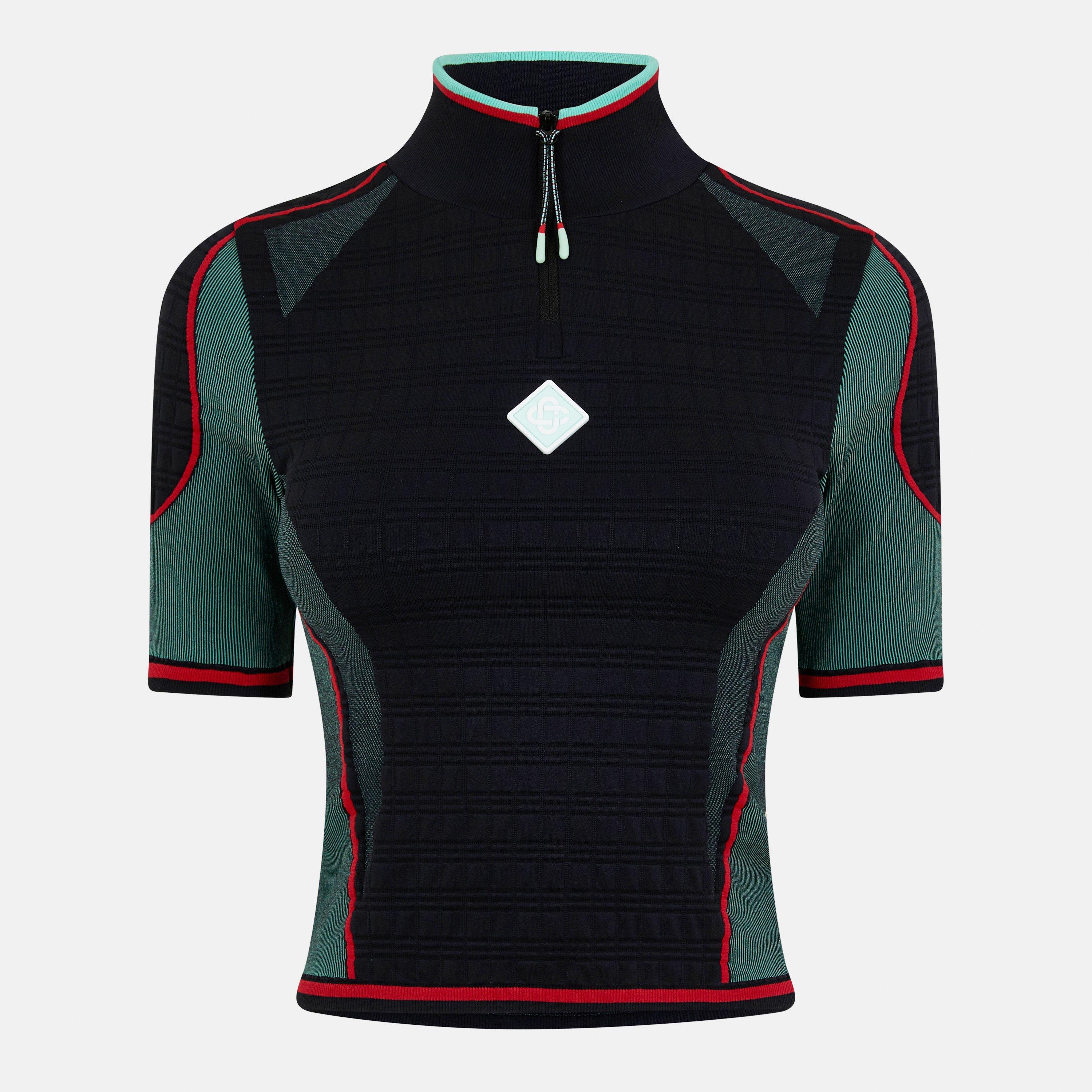 The Casablanca Zipped Long Sleeve T-Shirt is designed with a streamlined shape for everyday wear. Long sleeves provide extended coverage.