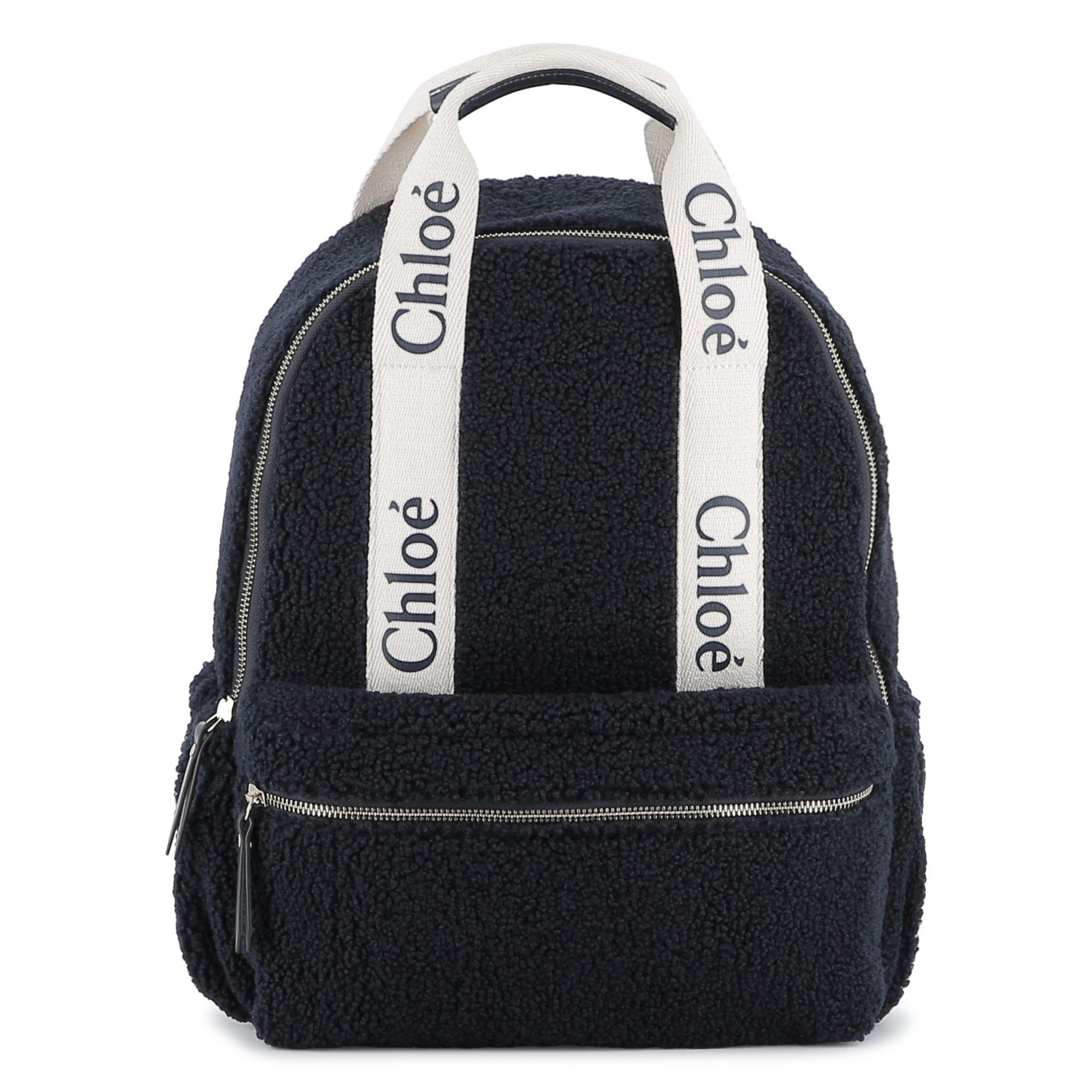 Chloe's Kids' Logo Backpack features a playful style and a practical design. The brand's logo decorates this scaled-down accessory, ideal for little ones carrying daily essentials in style.