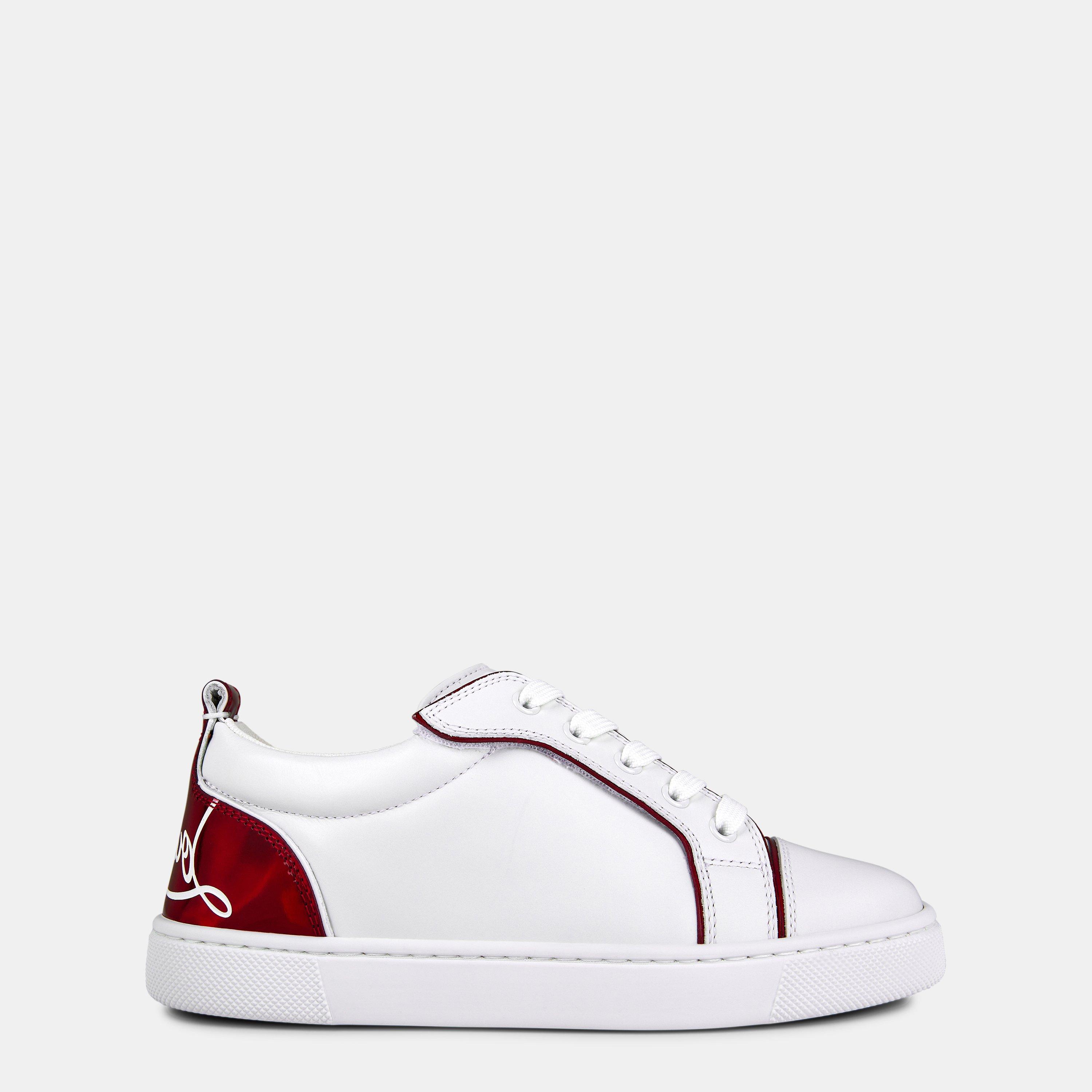 Features the iconic lasered Louboutin signature on the contrasting heel counter, adding a luxurious touch to these junior trainers