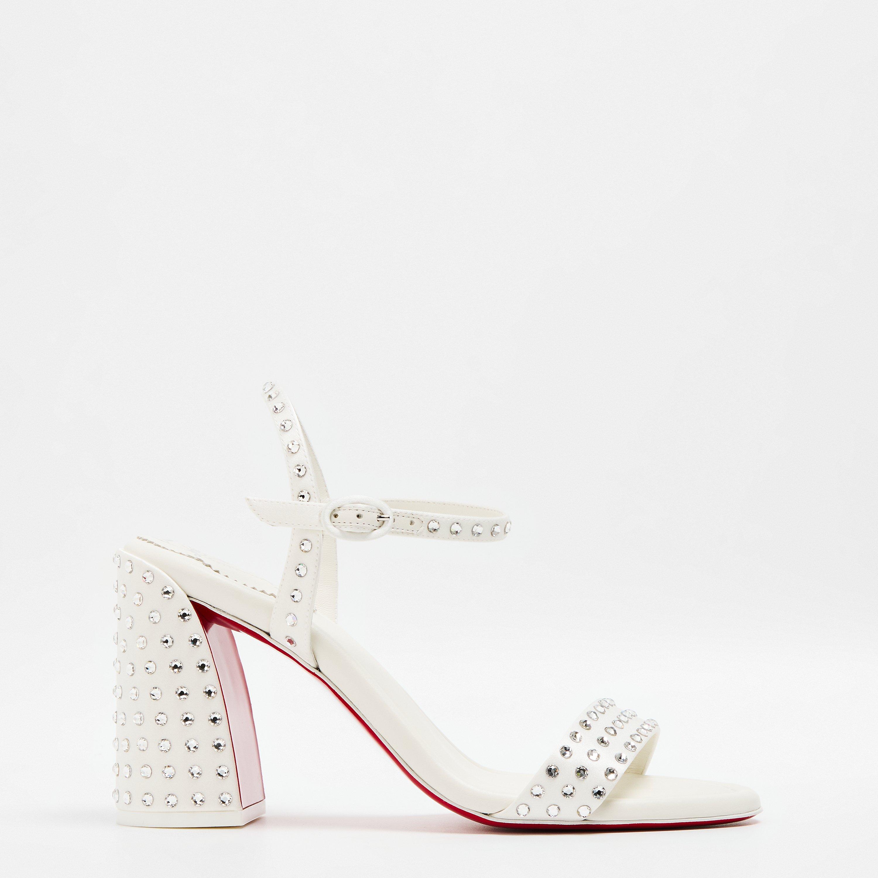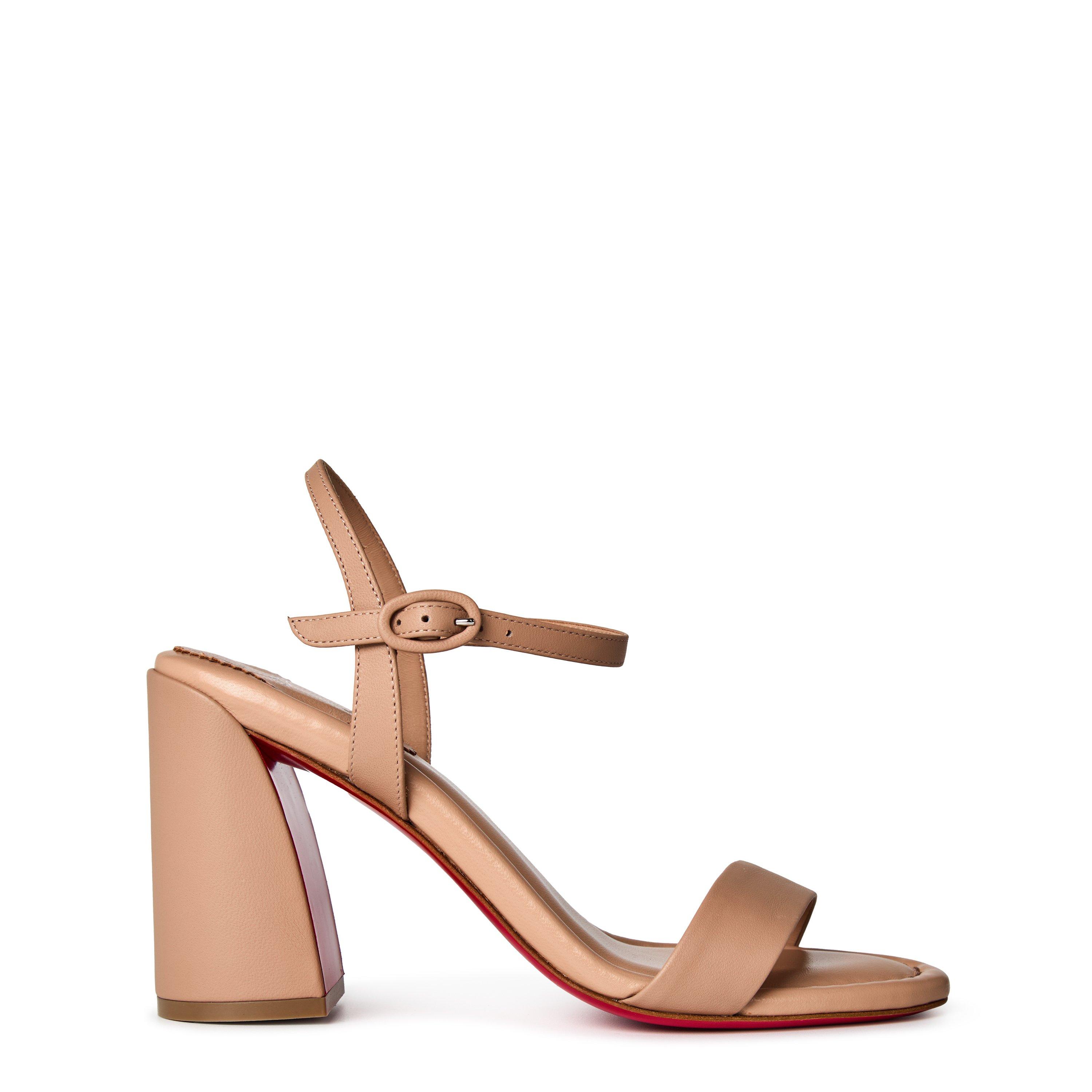 Christian Louboutin's Miss Jane 85mm Sandals combine timeless style with modern comfort. These leather dress heels feature a versatile chunky block design and the house's iconic red sole, perfect for summer weddings, evening outings, or any special occasion. The balanced height offers the ideal blend of glamour and wearability.