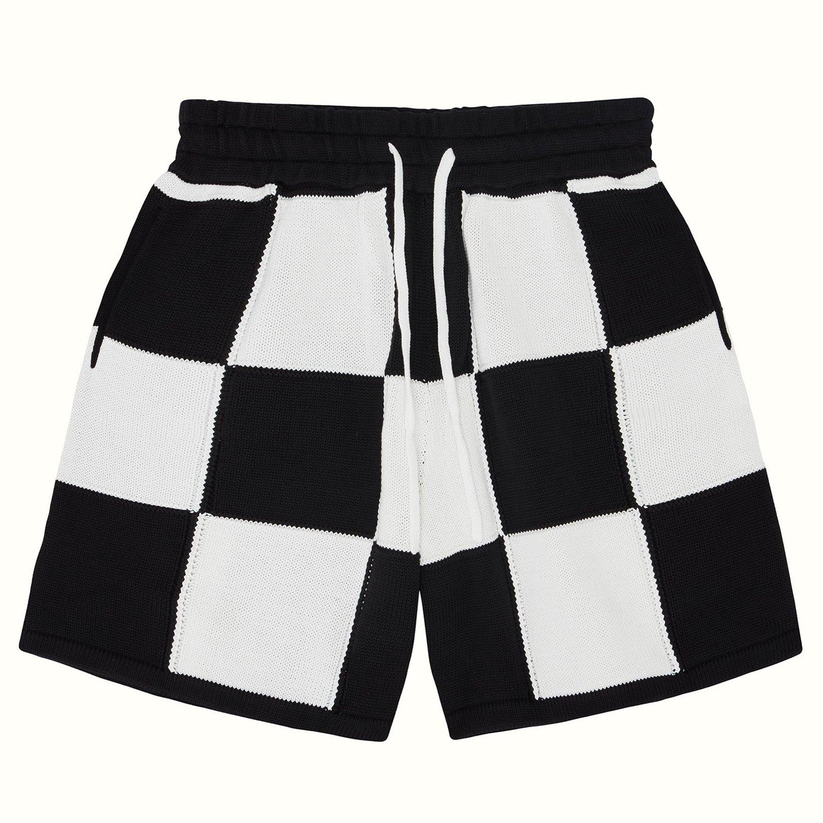 Brand new for ss23 are these chequered knitted cotton shorts. The silhouette is boxy and features 2 hidden side pockets, elasticated waistband and contrast cotton drawcords.