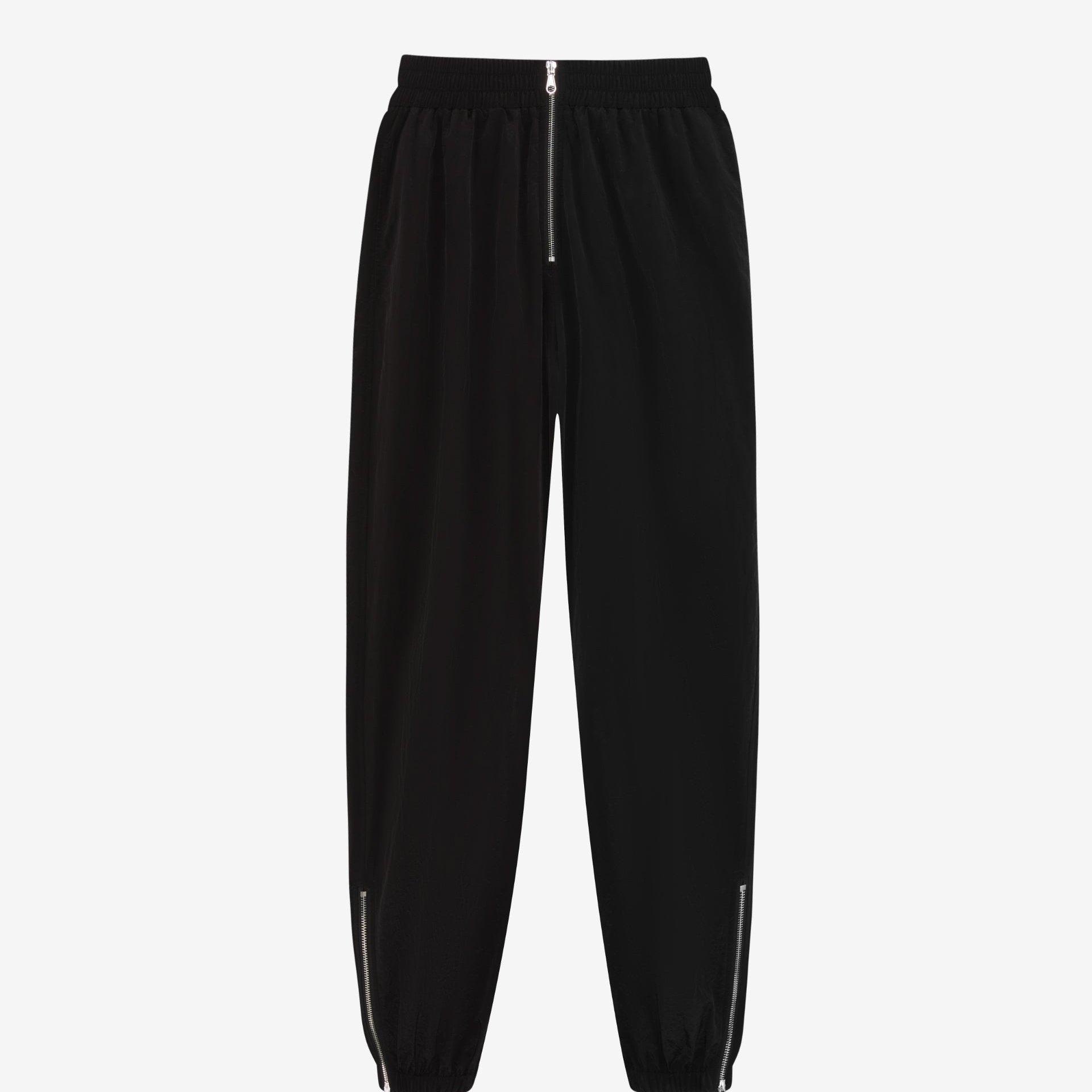 Crinkled nylon Elasticated hem Slim legged silhouette
