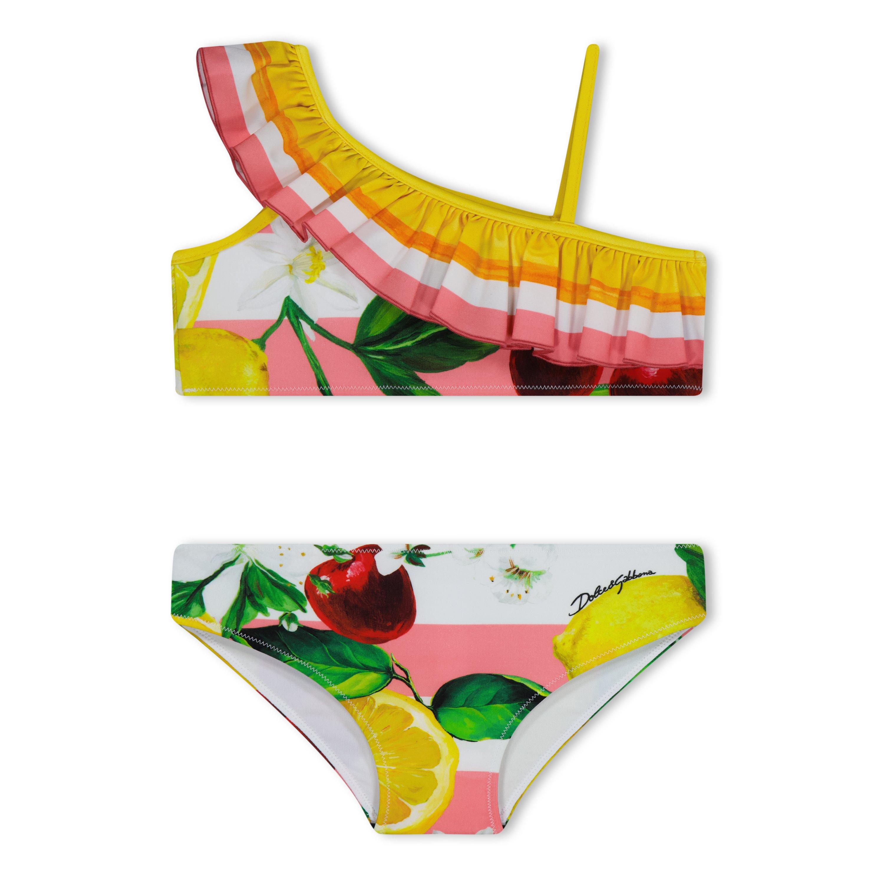 The Dolce & Gabbana Floral Bikini Set pairs structural detailing with seasonal prints. The two-piece kids' swim set features delicate floral prints, delivering standout summer styling for children.