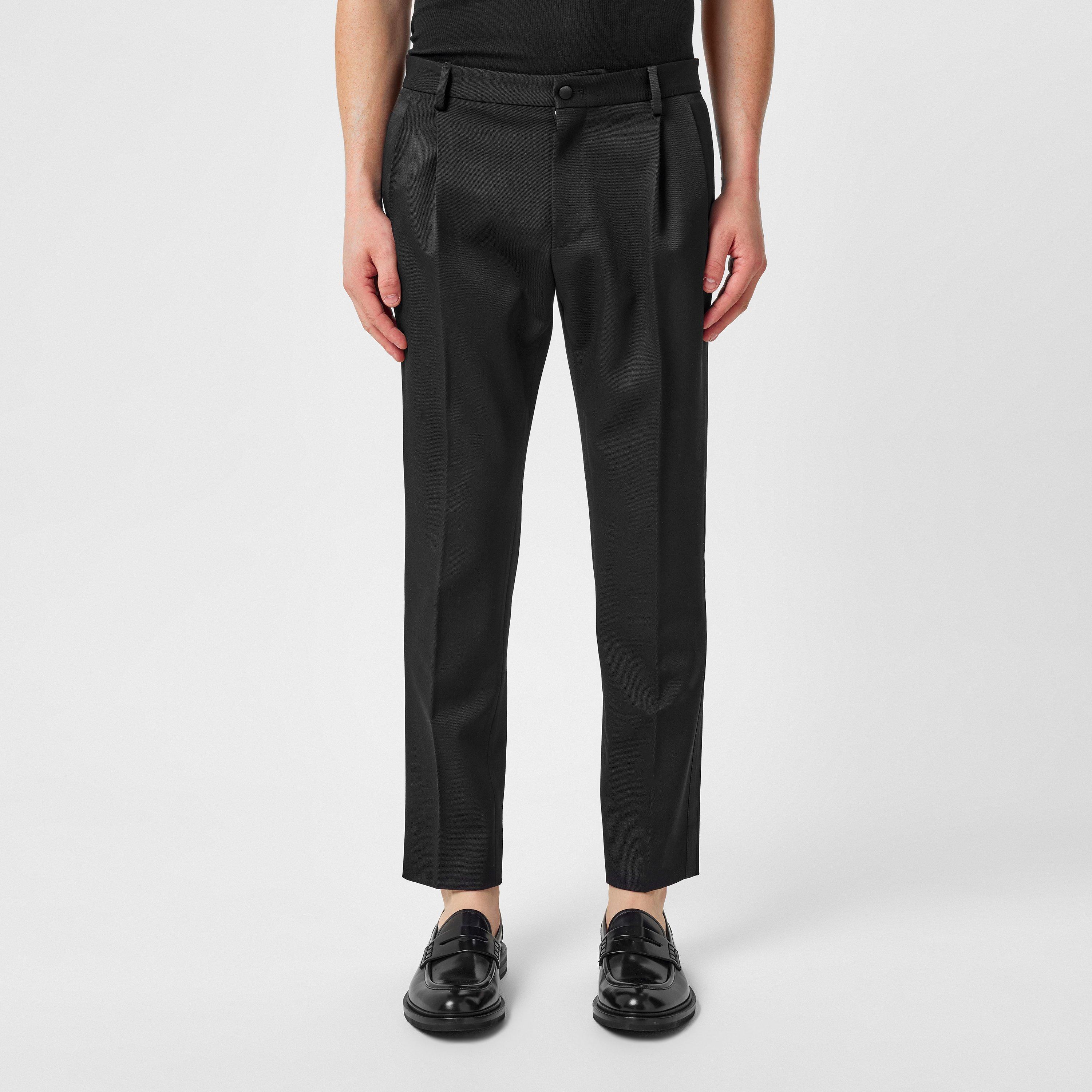Indulge in Italian luxury with Dolce & Gabbana’s Look Suit Trousers. Crafted from a sleek, high-shine fabric, these trousers feature a refined, slightly cropped silhouette, accentuated by a sharp front-pressed crease and sophisticated pleated detailing. Perfect for a lavish wedding or an elegant evening under the city lights, these trousers promise to elevate your ensemble with timeless style and impeccable craftsmanship.