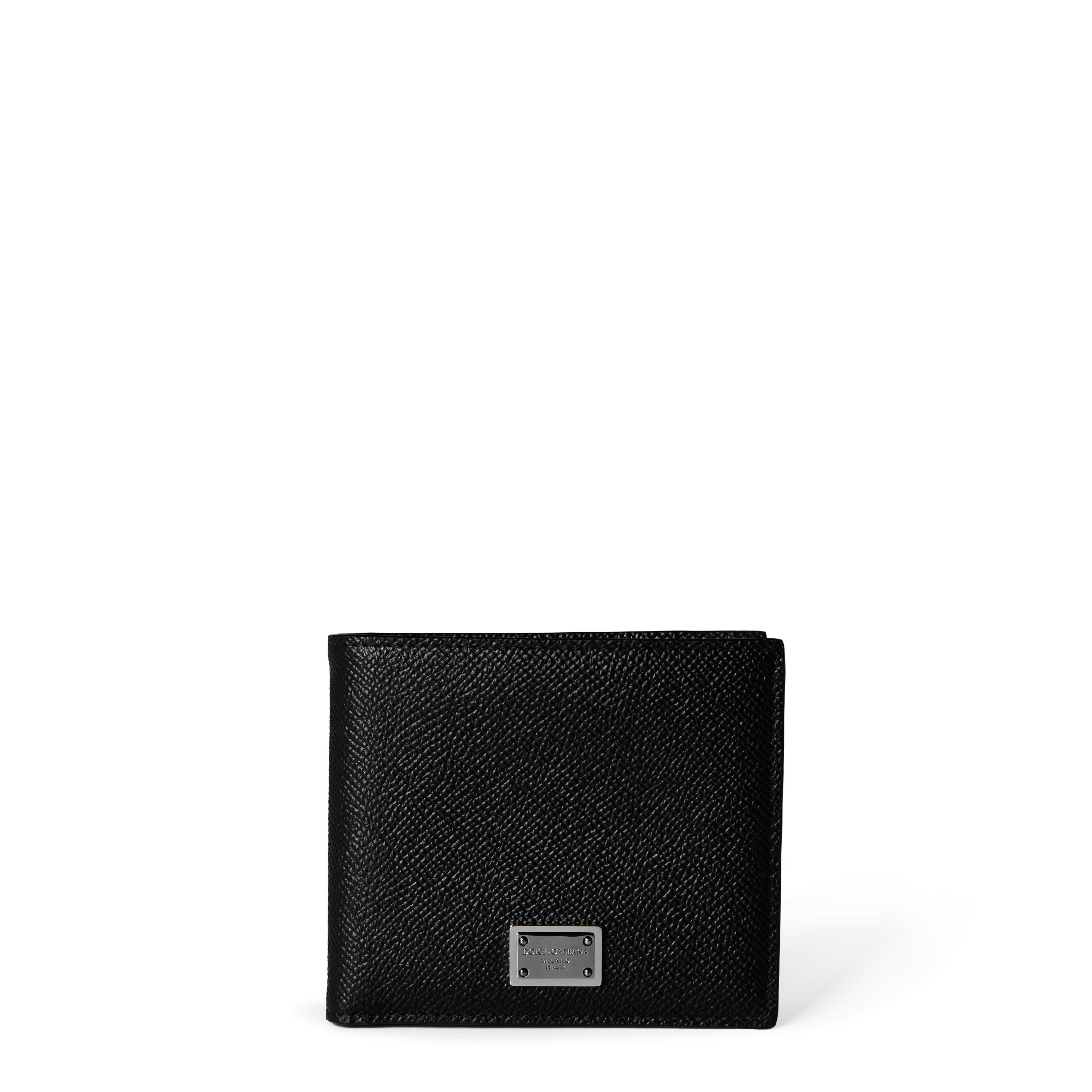 Men's Logo Plaque Calf Leather Bi-Fold Wallet