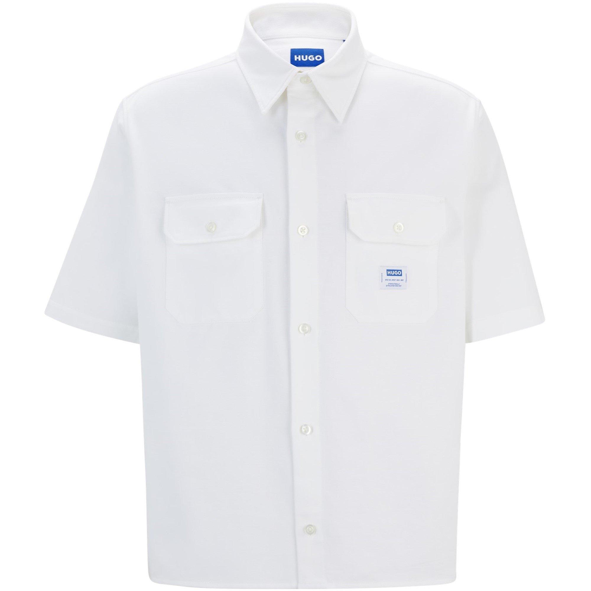 Hugo's Ekyno Short-Sleeve Plain Shirt features clean lines and a sharp cut. This adaptable shirt offers comfort with precise styling for everyday wear.